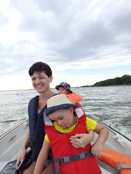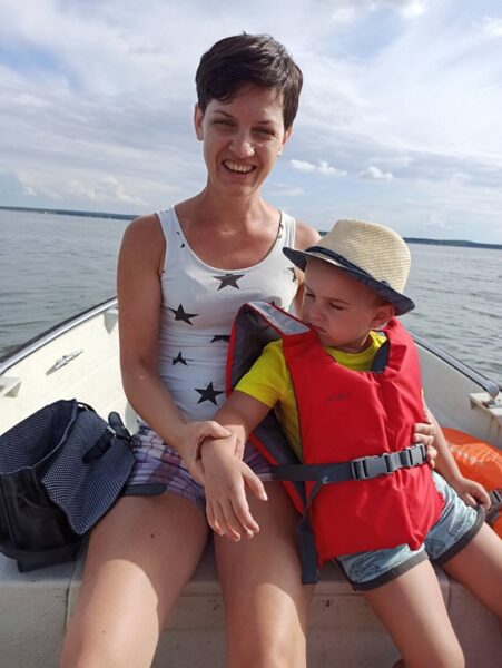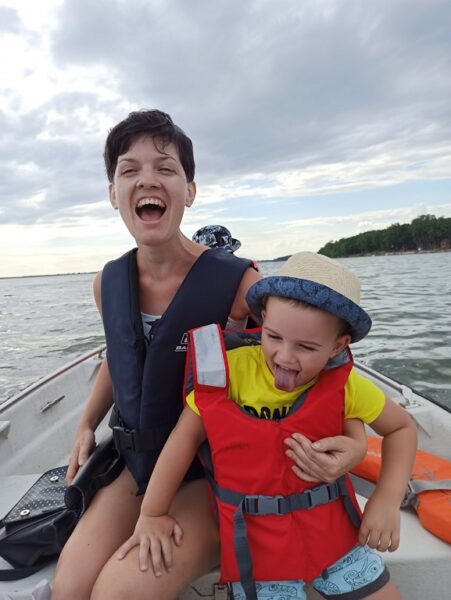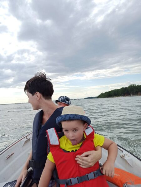 Dzieci wraz z małżonką moczyły nogi i chłonęły piękno przyrody i klimat Turawy. Ubrałem rodzinę w kapoki i wyruszyliśmy w rejs w okuł Turawy z planowanymi trzema przystankami na lody i jednym bym mógł zażyć kilku rzutów spinningiem ul za okoniem. Silnik pracował nie nagannie niewielka bryza chłodziła w upalny dzień, ale najbardziej cieszyły mnie iskry w oczach małżonki i dzieci. Dzieci miały wielką frajdę sterując łodziom a ja w duchu cieszyłem się fantastycznym czasem spędzanym razem z najbliższymi. Rejs w okuł Turawy zajął z przerwami na spacery, okonie i lody blisko pięć godzin. Wracając jednak nie obeszło się bez emocji, niebo zasnuło się ciemnymi chmurami i podmuch wiatru spowodowały nieco większą falę na jeziorze. W trosce o bezpieczeństwo rodziny, odkręciłem, więc manetkę gazu do oporu i w pośpiechu udałem się w kierunku Rybaczówki. Jak się okazało słusznie, bo gdy tylko obsłużyłem łódź i wpakowałem rodzinę do auta rozpętała się całkiem okazała burza. Dzień pełen emocji i pozytywnych wrażeń zakończyliśmy pizzą mojego autorstwa, dzieci zmęczone szybko udały się na spoczynek a ja i małżonka znalazłem czas by posiedzieć na tarasie i przy odrobinie czegoś złocistego cieszyć się bliskością tej drugiej bliskiej osoby.