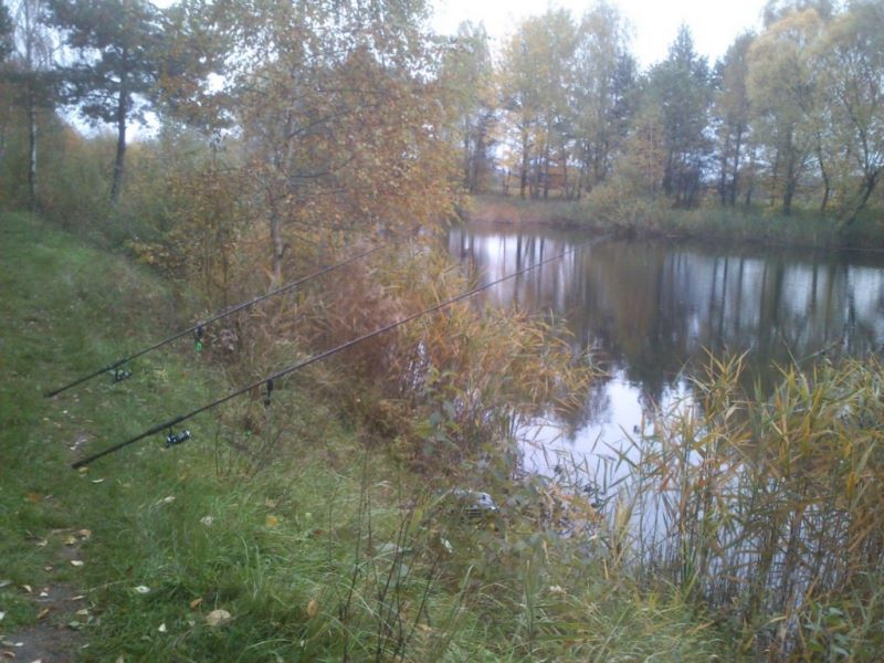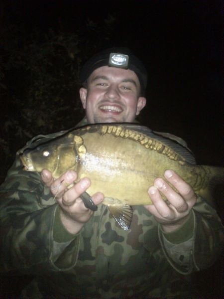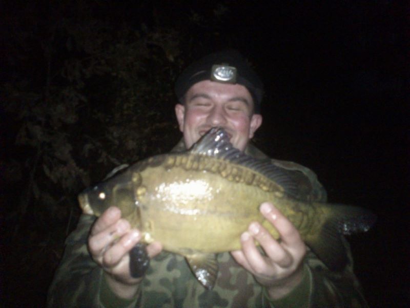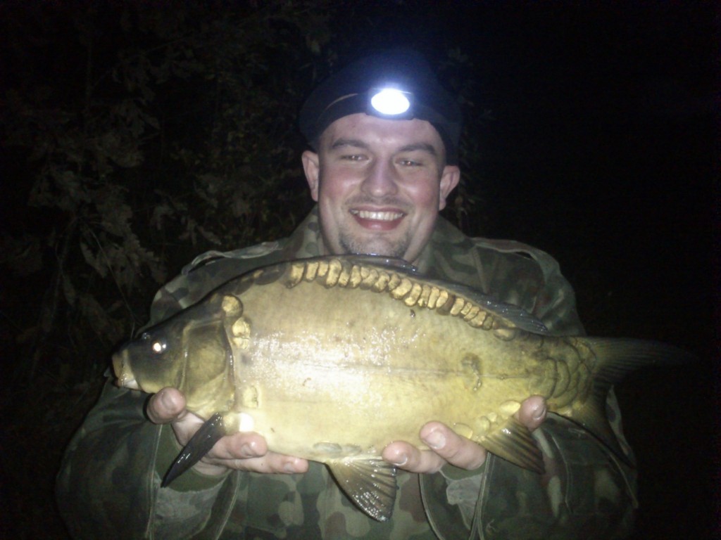 Według poczytnej prasy wędkarskiej i czołowych karpiarzy jesień to najlepsza pora na karpia jednak w moim przypadku z racji braku wolnego czasu czas ten był w bardzo słaby sposób wykorzystywany wędkarsko, skupiłem się w nim raczej bardziej na pracy niż na rybach co pewnie owocowało tak marnymi efektami. Jednak spotkawszy kolegę Darka w pracy nie mogłem nie zadać mu tego pytania więc wypowiedziałem standardową formułę “Darek jedziemy” padła równie standardowa odpowiedź “Gdzie? Na co? i Kiedy?”. Ale jak to w pracy różnie bywa dwukrotnie wyprawa była przekładana aż 16, 10, 2013 doszła do skutku. Udaliśmy się w nasze standardowe miejsce uprzednio zwalniając się z pracy około godziny. Na łowisku byłem około 16 gdzie zastałem już rozłożonego Darka który zabrał swój najnowszy gadżet łódkę do wywózki i chyba właśnie on okazał się kluczem do karpi żyjących w zbiorniku. Darek zaproponował wywiezienie moich zestawów więc skorzystałem z propozycji i zestawy swoje ulokowałem pod wierzbą na załamaniu metrowej głębokości spadku. Łowiłem na zestaw końcowy który zrobiłem w oparciu o 35lbs lead-core firmy Jaxon, z ciężarkiem 70g firmy Jaxon z bezpiecznym klipsem również wyżej wspominanej firmy, a przypony długości 15 cm skonstruowałem na hakach Kamatsu nr 6 i plecionce. Na przynętę na pierwszym zestawie użyłem kulki kukurydzianej firmy Tandembaits, a na drugim po pół kulki kukurydzianej i halibutowej firmy Venire. W raz z zestawami w dziewicze i niedostępne dla mnie do tej pory miejsce pojechało przy każdej wywózce po garści pelletu 3mm halibut i po parę kulek kukurydzianych i halibutowych. Na pierwsze i ostatnie branie czekałem około godziny i oczywiście musiało ono nastąpić w momencie gdy miałem zamiar wgryźć się w kiełbasę świeżo upieczoną nad ogniskiem. Podawszy Darkowi kijaszek z kiełbaskom pobiegłem do wędki gdzie udało mi się zaciąć karpika który dzielnie walczył a że kilkakrotnie próbował ucieczki w roślinność do wyciągnąłem go wraz z 5 kilogramami wodorostów w śród których skrywał się 1,5 kg karpik. Była to jedyna rybka tej wyprawy jednak było bardzo przyjemnie poczuć w końcu coś na wędce i pobawić się z rybą. Po udanym holu i sesji odgrzaliśmy już wystygłe kiełbaski i gawędząc dotrwaliśmy do 21 i wróciliśmy do małżonek ponaglani telefonami.