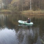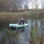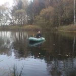 Teraz kilka wniosków z używania pontonu. Największym mankamentem tego pontonu są korki które trochę przepuszczają i po około 4 godzinach ponton nieco traci na swojej twardości, jednak kilka machnięć miechem niweluje ten problem. Nieco uwagi trzeba również poświęcić zatyczkom tych korków ponieważ trzeba we własny zakresie usunąć nadlewy gumy co zajmuje około minuty ale jednak. Dużym mankamentem jest brak sztywnej podłogi szczególnie jest to uciążliwe w czasie wsiadania i wysiadania z pontonu, problem ten niwelujemy wykonując podłogę ja wykonałem podłogę listwową ze sklejki 1cm o wymiarach 20x67cm w liczbie 5 szt mocując je do taśmy jutowej szerokości chyba 14 cm, co 5 cm. Jeżeli chodzi o naprawy ew uszkodzeń powłoki to wykonujemy je przy pomocy łatki wyciętej z OP-1 i kleju typu butapren. Ponton na wodzie zachowuje się dosyć stabilnie i pływa się nim bardzo lekko. Jeżeli otrzymasz nowy zestaw to niestety będziesz musiał poświęcić mu trochę czasu zanim zaczniesz go użytkować. Poniżej zamieszczam kilka fotek wyżej opisanej jednostki pływającej.
