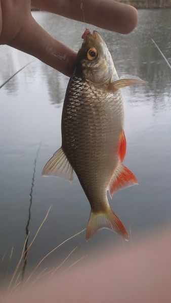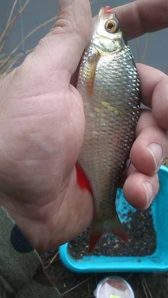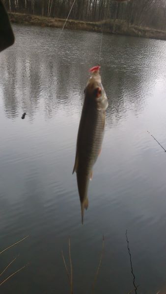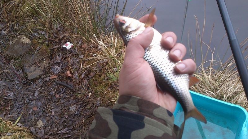 Jednak w żaden sposób nie mogłem się przemóc i ja rybocholik siłą rzeczy weekend spędziłem w domu tęsknie spoglądając przez okna w nadziei na nagłą poprawę pogody.  Czas ten wykorzystałem co prawda na naprawy sprzętu wędkarskiego, wiązanie przyponów, i porządki w torbach ze sprzętem, ale coś ciągnęło mnie nad wodę. Więc w poniedziałek w ostatni dzień urlopu pomimo deszczu wyrwałem się na w okolicach godziny 11 na ryby, ze względu na zmienne warunki atmosferyczne zabrałem ze sobą parasol wędkarski firmy Konger  który miał ochronić mnie i sprzęt przed zmoknięciem. Wykorzystując chwilową przerwę w opadach przemieściłem się  na glinianki i ze względu na silne porywy wiatru wybrałem miejsce osłonięte i zaciszne u podnóża skarpy  gdzie rozmościłem się z całym majdanem. Klasycznie jak to wiosną zwykłem wędkować postawiłem na bata i odległościówkę, bo coś coraz bardziej mnie do tych metod ciągnie nie wiem dlaczego ale jednak powoli przedkładam spławik nad grunt. Pewnie jest to spowodowane chęcią doskonalenia się ale wszyscy przyznamy że spławik  ma w sobie te odrobinę magi która nieodparcie wciąga nas wędkarzy.  Bat pozostał z zestawem od poprzedniego wędkowania czyli z zestawem wiązanym na ulubionej prze zemnie żyłce przyponowej marki Balsax  z dwu gramowym spławikiem i hakiem nr 16 na żyłce 0.10 również firmy Balsax.  Odległościwóka natomiast to mój uniwersalny feeder firmy Mikado z serii Trython o długości 330. Za zanętę posłużyła mi zanęta firmy Traper Płoć Sekret z pinkami i białymi. Jako że miejsce wędkowania pokryło się idealnie z miejscem wędkowania piątkowego to nie musiałem męczyć się z gruntowaniem łowiska i mogłem od razu przystąpić do nęcenia i zarzucania zestawów, na bata założyłem dwie czerwone pinki i posłałem zestaw w międzyczasie gdy zakładałem przynętę na drugiej wędce to na bacie miałem branie pięknej wzdręgi, rybkę sfotografowałem i  wypuściłem w spokoju zarzuciłem drugi zestaw nieco opodal pierwszego zakładając trzy białe w nadziei na grubą potkę. Na bacie częstotliwość brań była znakomita jako druga na brzegu zameldowała się ładna gruba płotka i  tak na przemian raz wzdręga raz płotka. Aż brania urwały się nagle i już myślałem ze podeszłą grubsza rybka gdy po powierzchni wody jak piranie przemknęło stadko wzdręg  i stały się one moim utrapieniem  nie pozwalając zestawowi opaść żerowały jak stado piranii w końcu odpuściły sobie i odpłynęły w inną cześć zbiornika.  Nastał długi okres bez brań gdy spławik odległościówki znikł pod wodą i wyholowałem kolejną  płoć może nieco ponad 10cm.  Brań na odległościówkę więcej nie miałem za to na bata połowiłem jeszcze kilka wzdręg i po telefonie na mój drugi tajny numer musiałem zwinąć się i wrócić do małżonki i córeczki. Wyprawa była niezmiernie udana licząc czas i warunki atmosferyczne połów można tez zakwalifikować do udanych, rybki nie pozwoliły na nudę i mogę powiedzieć że nawet dopisały, ja doładowałem trochę baterie i szczęśliwy wróciłem do domu.