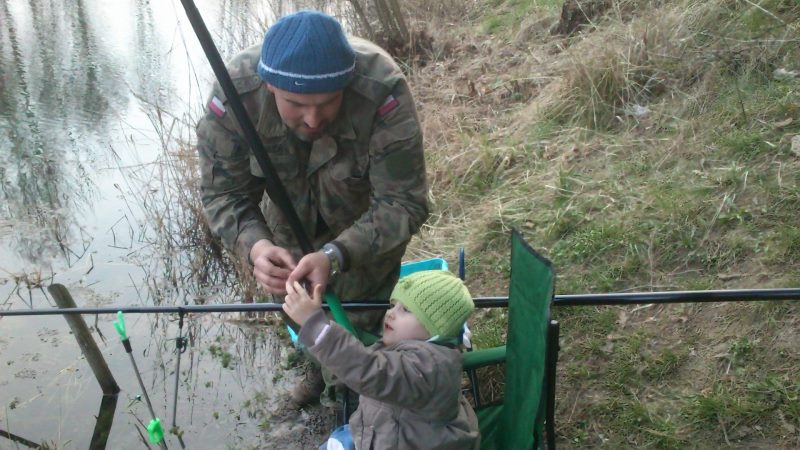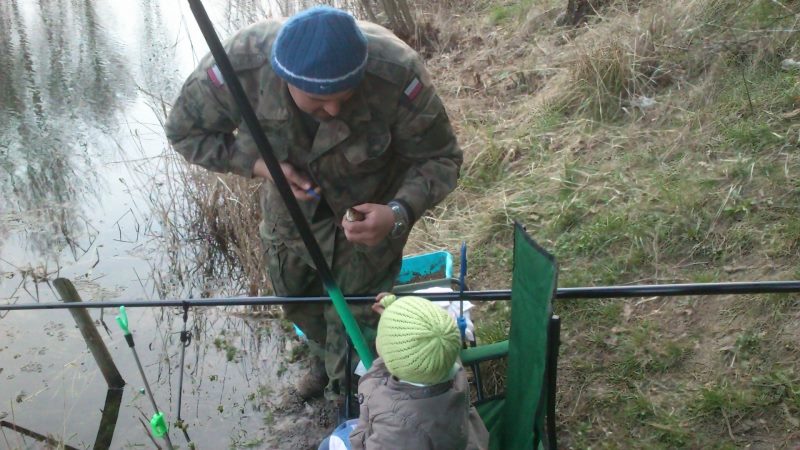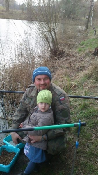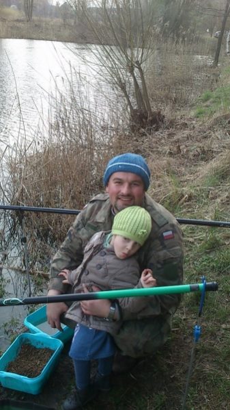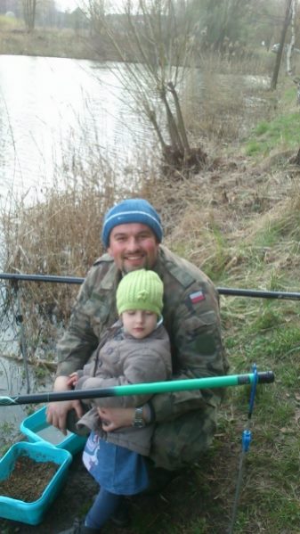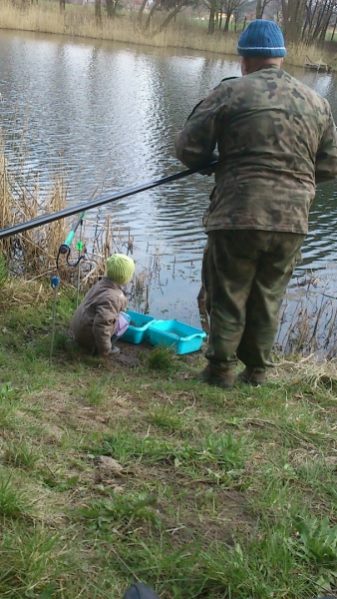 Dzień 27 marca 2014 był niezwykle przyjemny słoneczny ale nieco jeszcze chłodny, jednak słoneczko po deszczach i ochłodzeniach jest zawsze miłą odmianą, w tak piękne dni jakoś człowiekowi idzie wszystko lepiej i w pracy się poukłada a i w domu co nieco się zrobi generalnie mówiąc chce się wszystkiego człowiek jest pełen energii i chęci. Więc po pracy pełen chęci i energii wróciłem do domu gdzie na podwórku przywitała mnie córka z żona od furtki krzycząc tato jedziemy na ryby, słysząc to od dziecka skierowałem w stronę małżonki spojrzenie przy którym przysłowiowe oczy kota z Shrek’a były niczym i uległa. Szybko więc skonsumowałem obiad wypiłem kawę na dwa łyki i w cztery minuty przeniosłem graty ze złomka do rodzinnej skody w trakcie tej operacji okazało się że zapomniałem białe i pinkę wyciągnąć z auta, ale dzięki chłodnej pogodzie przechowała się wyśmienicie. Na łowisko wyruszyliśmy o godzinie 16:30 a łowienie rozpoczęliśmy o godzinie 17. Łowiliśmy na dwa baty w długościach 5 i 7 m oba marki Carpelan z 2g spławikami i hakami 16 Kamatsu nażyłce 0,10 Balsax. Za zanętę posłużyła zanęta Gut-mix Attack ryby karpiowate zmieszana w stosunku 1do 1 z zanętą Trapera Płoć Specjal, doprawiona melasą brasem firmy MC Karp, małym opakowaniem białych i pinki.
