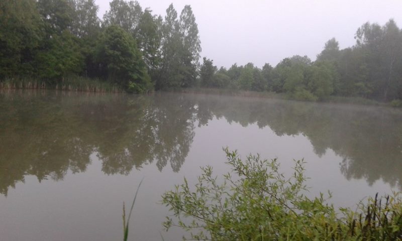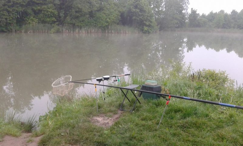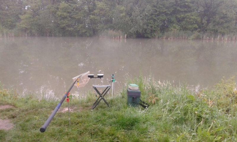 Za cel obrałem łowisko sportowe ze względu baaardzo zaawansowanej ciąży małżonki i możliwości porodu w każdym momencie, oddalone o niecałe dwa kilometry od domu tak że mogłem w ciągu pięciu minut być w domu. Po porannej kawie i śniadaniu nad wodą stawiłem się o godzinie 6:00 i przystąpiłem do rytuału moszczenia miejscówki rozrabiania zanęty i konstruowaniu zestawu.