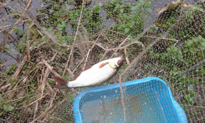 O ile umiejscowienie drugiego zestawu to bułka z masłem to przy pierwszym jeżeli nie zabrało się środka pływającego należy wykazać się dobrymi umiejętnościami rzutowymi. Ustawiłem się pewnie na brzegu i obrałem cel na około 40m. Zestaw typu chod rig musiał przemknąć przez dziurę w gałęziach wierzby którą sam w okresie letnim wykonałem i wylądować w okolicach patyka który znaczył krawędź spadku. Pierwsza próba i mój misternie wykonany zestaw wisi na drzewie. Co się dzieje myślę sobie wyszedłem z wprawy rwanie i montaż kolejnego i również drzewo po trzecim zestawie który szyderczo dyndał na gałęzi. Postanowiłem chwilę jeszcze posiedzieć przed czwartą próbą z ostatnim chod rig’iem jaki miałem w swoim arsenale. Odsiedziałem chwilę i skoncentrowawszy się umieściłem zestaw w wytypowanym miejscu.