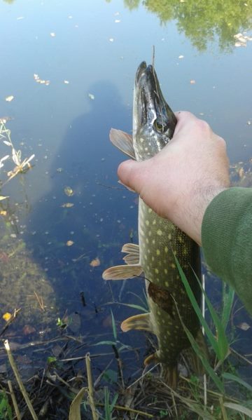 Zaparzyłem herbatę i rozkoszowałem się chwilą którą zakłócił dźwięk sygnalizatora. W końcu pomyślałem, zerwałem się do wędki i uniosłem do góry wędzisko przytrzymując szpulę. Poczułem to przepiękne walnięcie i moc ryby która była na końcu zestawu. Na ustach zagościł uśmiech a krew w żyłach która już i tak szybko krążyła przyśpieszyła. Jednocześnie przyszedł spokój i opanowanie, tak potrzebne w czasie holu. Rozpocząłem tą żmudną ale jak przyjemna czynność. Karp odjeżdżał kilka razy ja na spokojnie skracałem dystans zabawa trwała w najlepsze gdy nagle poczułem luz. Nie pomyślałem NIE!!! Pech zwijam zestaw a na końcu rozszył się leadcore. Jakim sposobem? Pierwszy raz się mi to zdarzyło. Wnioski błyskawiczne że jednak mimo wszystko trzeba mendę kleić klejem. Posiedziałem chwilkę i postanowiłem zakończyć wędkowanie. Gdy już zapakowałem sprzęt naszła mnie nagła ochota na spina. Czemu nie pomyślałem i obszedłem moje glinianeczki do okola rzucając za szczupakiem. I jak głosi stare powiedzenie „kto szuka ten znajdzie” i ja znalazłem swojego głodnego szczupaczka. Szczupak skusił się na blaszkę i po cztero minutowej walce podebrany został w łąpkę, z fotografowany i uwolniony. Ja szczęśliwy wróciłem do domu gdzie atmosfera gęsta zdążyła się już nieco przerzedzić. Pogodziłem się z małżonką i spędziłem resztę dnia na zabawie z dziećmi. Oczywiście zaplanowałem już kolejną wyprawę w dniu następnym.
