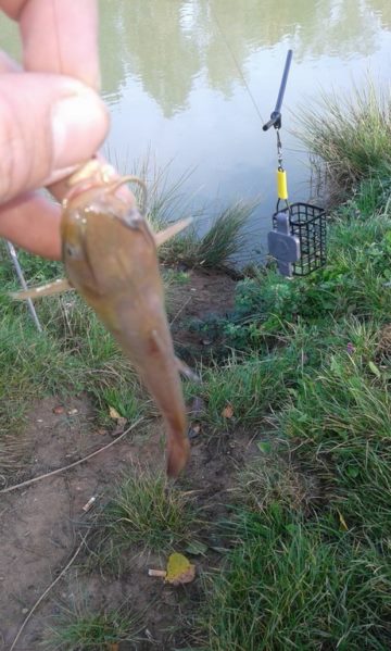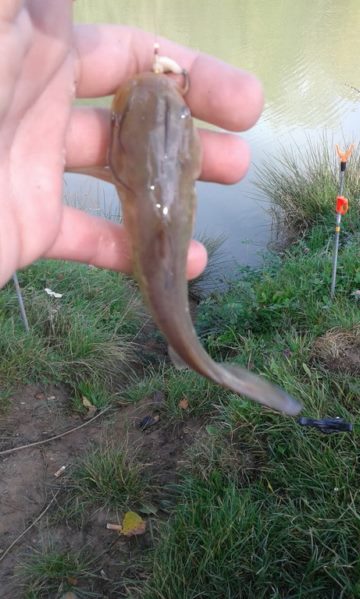 Miałem wielką ochotę wybrać się z wędką odległościową nad glinianki. Wykonałem wiec szybki rekonesans i stwierdziłem że zalegające na powierzchni wody liście uniemożliwiły użycie wędki odległościowej. Więc w dniu 09.10 wybrałem się na ulubione glinianki z feederem w celu zażycia najwspanialszego relaksu jaki znam; No…. może prawie ale wędkarze domyśla się o co mi chodzi. Ponieważ został mi całkiem niezły zapas zanęt i robactwa postanowiłem trochę go wykorzystać i spróbować swoich sił w metodzie którą cenię bardzo. Jeżeli chodzi o sprzęt to w Fedderach w tym roku nic się nie zmieniło i korzystam nadal z moich Mikado tryton Fedder i kołowrotków York Tontor 4004, myślę że jeszcze ze dwa sezony wytrzymają i dadzą mi sporo radości z poławianych przy ich pomocy ryb. Zestawy zbudowałem bez kombinacji w sposób najprostszy z możliwych stosując krótką rurkę anty- splątaniową, stoper krętlik i przypon. Na pierwszym zestawie z racji populacji karpia użyłem przyponu na żyłce 0.16 i haku 8, drugi zestaw uzbroiłem w hak 14 na żyłce 0.12. Zanęta jaką użyłem była znakomita zanęta Bogusława Bruda Leszcz Brasem, dopalona połową ćwiartki pinki i opakowaniem białych. Do zanęcania używałem również cztero milimetrowego pelletu, który kupiłem bez wąchania w sklepie i w domu okazał się nieco zjełczały i zarobaczony. Pewien sklep straci klienta lub kilku. Ale wracając do wędkowania to oba zestawy ulokowałem w zatoczce na lekkim spadku jeden w odległości 8m od przeciwległego brzegu a drugi na płytszej wodzie około 2m od brzegu przeciwległego. Ku mojemu zaskoczeniu na branie czekałem dosłownie dwanaście sekund od zarzucenia zestawów i miałem dwa jednocześnie. Szaleństwo pomyślałem sobie i zaciąłem oba zestawy, już w pierwszym momencie nabrałem podejrzeń co do gatunku ryby. Po wyholowaniu zameldowały się sumiki karłowate. Rybki te stały się plagą na łowisku sportowym na którym poławiam, zniknęli wędkarze starszego pokolenia i nikt już nie trzebi populacji tej rybki. Ludzie którzy wędkują na tym łowisku nastawiają się na karpia i amura stosując selektywne przynęty których sumik nie jest wstanie zjeść. Ja jednak zadowolony że coś bierze nieugięcie łowiłem dalej i momentami chciałem już łowić tylko na jeden feeder. W czasie dwu godzinnego łowienia złowiłem około 20 szt. Tego małego kolczastego szkodnika, w przedziale od 5 do 20 cm. Po uśmierceniu drani od razu znalazł się kot, amator tych rybek których miał chyba ucztę życia i to bez wysiłkowo. Oczywiście w momencie wybicia drugiej godziny łowienia telefon znowu przypomniał o tym ze posiadam żonę i dzieci, musiałem wrócić do domku.