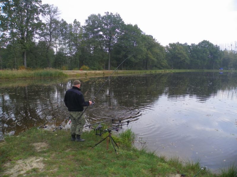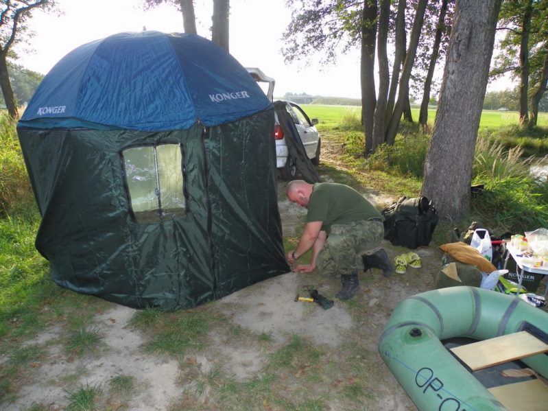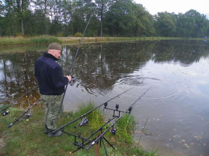 Urlop płynął sobie spokojnie przerywany wyprawami wędkarskimi, ja po dwóch tygodniach odzyskałem swój normalny stoicki stan. Rozleniwiłem się coraz bardziej i w końcu naprawdę zacząłem wypoczywać. Każdy dzień przynosił ukojenie i odbudowywał z powrotem więzy z dziećmi których w końcu jakiś czas nie widziałem. Życie zaczęło przypominać sielankę nawet najdroższa połowa przyzwyczaiła się do moich małych wypraw wędkarskich i nie widziała w nich już nic złego bo z każdej wracałem coraz bardziej wypoczęty i uśmiechnięty. Od tygodnia nie korzystałem z telefonu i nie słyszałem znienawidzonych dźwięków dzwonka tego przeklętego urządzenia. I tak na przemyśleniach mijał mi poranek dnia 10 października gdy został zakłócony wyżej wspominanym dźwiękiem. Z nienawiścią spojrzałem na ekranik i wypuściłem powietrze to tylko Darek a On dzwoni zazwyczaj w rybnych sprawach. Więc odebrałem i słyszę ucieszony głos Darka że zarezerwował stanowisko 9 na łowisku Ademac w Pruszkowie. No jak się domyślacie nie mogłem odmówić więc wstępnie potwierdziłem chęć do wyjazdu i od razu zacząłem kombinować jak przyzwolenie małżonki zdobyć. A dodam że pikanterii sytuacji dodawały szczepienia Wiktora, a ci którzy dzieci posiadają wiedzą że sytuacje takie kończą się gorączką i zarwana nocą lub dwiema. Sytuację uratowała teściowa która chciała Magdę zabrać do siebie na weekend na co przystałem. Skoro mojej małżonce zostało tylko jedno dziecko szansę na nockę wzrosły do 80 % . Zacierając ręce przystąpiłem do urabiania małżonki która się zgodziła po spokojnej o dziwo dyskusji. W ramach pomocy noc z piątku na sobotę wziąłem na siebie i przenosiłem najmilszą pociechę na rękach przez całą noc. W sobotę od rana pomimo zmęczenia pakowałem graty do dzielnego samochodu z pod znaku VW marki polo. Cały fakt utrudniało to że mieliśmy się we dwóch spakować do niego i jeszcze spędzić w nim noc. Jednak poprawa pogody i korzystne prognozy pozwoliły spędzić noc w namiotach i podnieś komfort wędkowania relaksu i wypoczynku. Na ryby wyruszyłem o 13:30 tak aby odebrać Darka i o 15:00 być już na łowisku. Dla osób które zarzucą mi nieczułość wobec potomstwa dodam ze pozostawałem w kontakcie telefonicznym z małżonką w domu mogłem być w ciągu 15 minut naruszając po drodze kilka przepisów. Cały szczęśliwy przystąpiłem do rozbijania obozowiska w pierwszej kolejności rozłożyłem stojak i wędziska. Nadszedł czas na test nowego zestawu który był nagrodą w konkursie na blogera kwartału na portalu wędkuje.pl . Miałem wielką ochotę testować wędzisko i kołowrotek zaraz po otrzymaniu . Jednak życie jak zwykle zweryfikowało plany i musiałem kilka miesięcy poczekać na możliwość jego testowania.