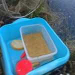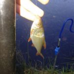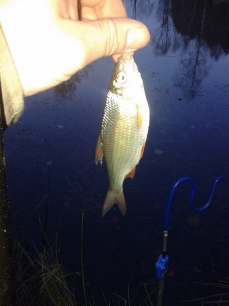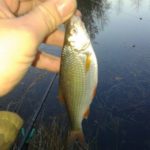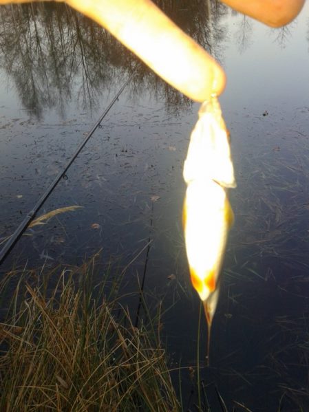 W końcu czwartego grudnia mogłem teorie na praktykę przełożyć i zaatakowałem z podwójnym entuzjazmem moje glinianki w celu zapolowania na płoteczki. Szybciutko wygruntowałem łowisko i zarzuciłem mój delikatny gramowy zestaw. Temperatura oscylująca w okolicy zera stopni pozwoliła jeszcze na skorzystanie z Feddera z plecionką w nadziei na walkę z karpikiem z zarybień. Jednak feeder przyniósł zerowe rezultaty może przez to że całą uwagę skoncentrowałem na bacie. Zaowocowało to kilkunastoma dorodnymi płociami i kilkoma małymi okoniami. Ryby brały tak delikatnie że naprawdę trzeba było reagować na najdrobniejsze ruchy spławika. Mimo wszystko brania były regularne i cieszyłem się z każdej złowionej sztuki.