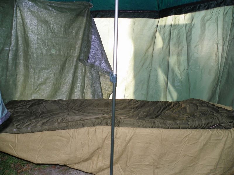 W parasolu mieszczą się dwa fotele elektrostatyk F5R z podnóżkami lub jedno łóżko typu kanadyjka i fotel. Spędziłem w nim już kilkanaście nocek w różnych warunkach pogodowych. Parasol służył również dzielnie jako osłona od deszczu i słońca.