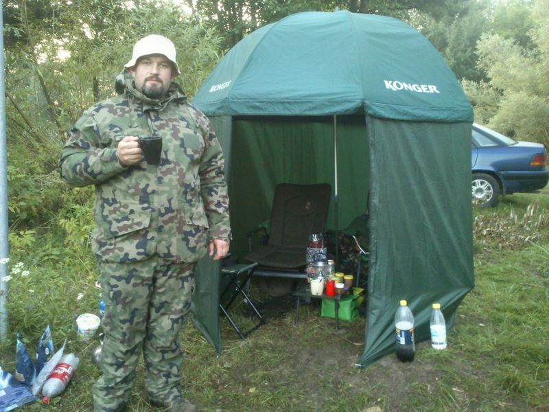 100_0587-KopiowanieParasol Konger nabyłem w roku 2012 z nadzieją że zapewni mi godne schronienie na rybach i po dwóch sezonach mogę opisać jego parametry użytkowe.