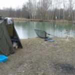 Nadeszła niedziela pogoda oczywiście popsuła się nieco i mimo słońca komfort nad wodą psuły podmuchy zimnego wiatru. Ja pojawiłem się nieco po godzinie 13 nad wodą wytypowałem miejscówkę i aby komfortowo spędzić czas rozłożyłem namiot gdzie wymościłem fotel i przygotowałem zestawy. Na włos moich zestawów trafiły nowe kule firmy TTCarp pod szumną nazwą Patologia X1 i przynęta która robi ostatnio furorę na łowisku sztuczna kukurydza. Oporządziwszy wędki oddałem się konsumpcji świeżej kawy i uwagę swoją poświęciłem książce.