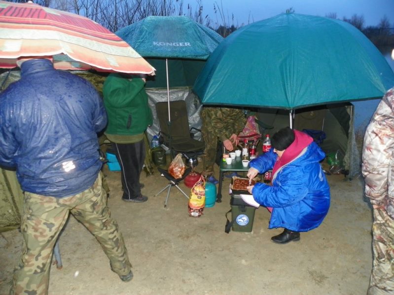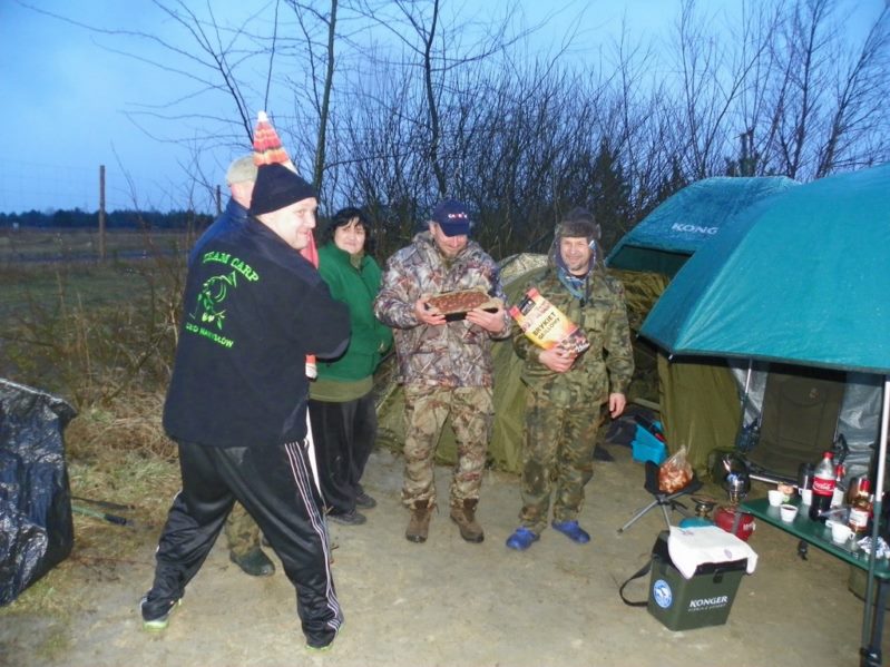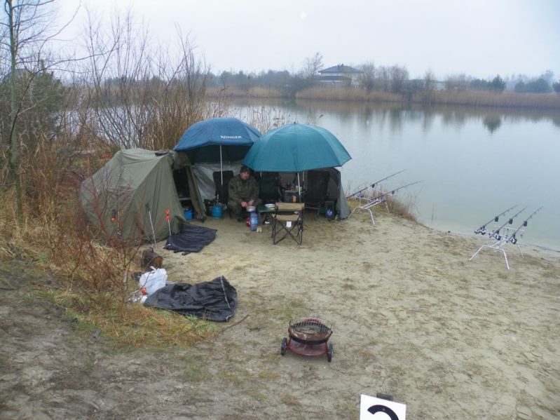 Niska temperatura i zmęczenie dnia poprzedniego zmorzyły mnie niezmiernie więc w okolicach godziny dwudziestej pierwszej opatulony w śpiwory śniłem swoje karpiowe sny. Noc upływała w spokoju aż odezwała się moja centrala. Wypadłem w mrok poszukując moich wędzisk aż nocne chłodne powietrze, poparte równie chłodna mżawką i wiatrem obudziły mnie na tyle abym zdał sobie sprawę że to centrala ześwirowała i sama z siebie się wzbudziła. Receptą na to okazały się świeże baterie. Do godziny ósmej wylegiwałem się w bambetlach. Brań nie było ale był czas najwyższy na powrót to domu do pociech i małżonki która z utęsknieniem wyczekiwała na powrót męża dając co jakiś czas znać o tęsknocie przy pomocy telefonu.