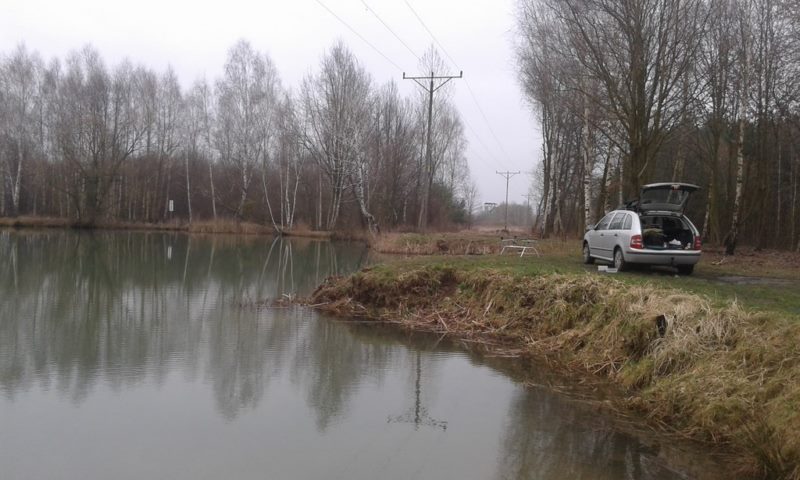 W piątek dwudziestego siódmego marca już o godzinie dwunastej trzydzieści siedziałem za sterami samochodu i w tajemnicy przed całym światem zmierzałem na karpie. Miałem dylemat gdzie skierować swoje kroki jednak kolega szybko rozwiał wątpliwości. Śmigałem więc w kierunku glinianek po drodze wstępując do baru pierożek na kolacyjno obiadową porcję ruskich z kefirkiem. Na gliniankach stawiłem się chwilę po godzinie trzynastej i wyprawę rozpocząłem od kubka gorącej kawy. Dobrze że dzień wcześniej w tajemnicy przed całym światem przemyciłem do auta podstawowy sprzęt. Chcąc spotkać się w końcu z rybą postawiłem na kukurydzę i dziesięcio milimetrowe kulki. Postanowiłem uatrakcyjnić przynętę nęcąc punktowo przy pomocy siatek PVA i miksu złożonego z zacukrowanej kukurydzy pelletu rybnego oraz zanęty spożywczej zalanej boosterem homar rak. Zadowolony z swojej przebiegłości narobiłem kiełbasek PVA. I posłałem zestawy tym razem na płytką wodę.