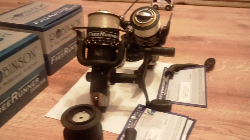 Kołowrotki Robinson Free Runner 506 ujęły mnie swoim wyglądem utrzymanym w tonacji czerni z złotymi wstawkami , jednak nie tylko wygląd miał znaczenie ale i analiza konstrukcji kołowrotka miała niebagatelny wpływ na pozytywną decyzję przy zakupie tych że kołowrotków. Pierwszą rzeczą na jaką zwracałem uwagę to wielkość tarczek hamulca w stosunku do rozmiaru szpuli, solidny i gruby spigot, oraz łożyska w kluczowych miejscach. Miały więcej niż mógłbym żądać za cenę oscylującą w okolicy stu złotych dodatkowo pięcioletnia gwarancja przyczyniła się również do zakupu tych kołowrotków. Kołowrotki jak już wspominałem miały służyć do feederów jednak wielokrotnie podpierałem się nimi przy ucieczkowych zestawach karpiowych i spisywały się świetnie przy kijach prologic c1. Na chwilę obecną mają na koncie wyholowane dwa amury w okolicy 8kg i 6 kg karpika. Hamulec działał naprawdę płynnie szczególnie w czasie holu amurów pokazał się z dobrej strony równo i bez szarpnięć oddając żyłkę.