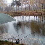 Na miejscu rozłożyłem stanowisko i osłoniłem się przed sypiącym śniegiem moim niedawno nabytym parasolem ze stajni Radical Quantum. Wygruntowałem łowisko i będąc niepewny gdzie mogą być ryby postanowiłem rozłożyć dodatkowo bata 5 metrowego aby poławiać w strefie tuż przy roślinności. Zestawy skonstruowałem w taki sposób aby pokazywały dobrze brania wystawiane a z wody wystawało dosłownie 3mm antenki. Posłałem po 5 kulek na zestaw zanęty z odrobiną pinki.