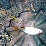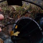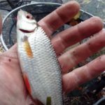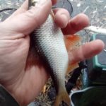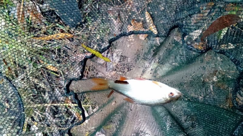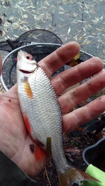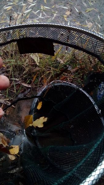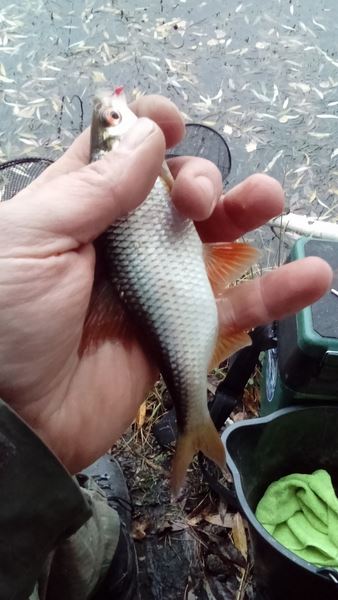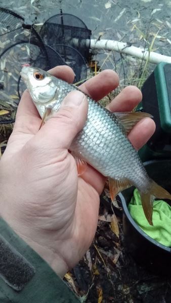 Oddałem się kontemplacji i wszystkimi zmysłami chłonąłem klimat przyrody i ekstremalnego rzekłbym łowienia. Cieszyłem się z ukuć chłodnych powiewów wiatru i z dźwięku śniegu padającego na materiał parasola. Nie kontemplatowałem zbyt długo gdy antenka spławika delikatnie wyjechała w górę przycięcie i po chwili w podbieraku zameldowała się pierwsza zimna płotka. Miło pomyślałem i w czasie gdy już wyciągałem podbierak w celu wycharczenia płotki miałem drugie branie na zestawie położonym przy roślinności. Kilka sekund i w podbieraku miałem dublecik. Nie rozstrzygnęło to dylematu z którego wędziska zrezygnować więc dalej twardo łowiłem sobie dwoma batami. Kilka chwil i z głębokiej wody kolejna płotka. Donęcenie zarzut i chwila stagnacji. Postawiam łowić na pojedynczą pinkę i okazuje się to strzałem w dziesiątkę na siedmiometrowym bacie mam regularne piękne wystawiane brania. I oczywiście moment nieuwagi i mój zestaw przy zarzucaniu wylądował na drzewie. Wymieniłem go błyskawicznie na zapasowy a oznaczony wcześniej grunt na wędzisku błyskawicznie pozwolił wrócić do łowienia płotek. Mimo w miarę dobrych brań chłód dawał mi się coraz bardziej we znaki zgrabiałe dłonie stawały się mało precyzyjne i coraz trudniej było pojedynczą pinkę na mały hak zakładać. I kolejny moment dekoncentracji popsuł całe wędkowanie bo zestaw ponownie na drzewie wylądował. Straciwszy ostatni zestaw z 7 metrowego bata byłem zmuszony wracać co nieco upokorzony do domu. Zasadniczo przy sobie miałem materiały aby kolejny zestaw wykonać jednak kto próbował robić to sztywnymi od zimna palcami ten wie ile nerwów i wysiłku to kosztuje. Stwierdziłem więc że czas wrócić po niespełna półtorej godziny wędkowania do domu. Gdzie czekał na mnie kubek gorącej kawy i gorący aromatyczny obiad.
