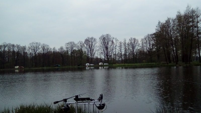 Rano dwudziestego pierwszego kwietnia przystąpiliśmy do rozkładania sprzętu, pompowania pontonu i sondowania łowiska. Postawiliśmy przepisowe dwa markery na nieco twardszych górkach zasypaliśmy delikatnie miejscówki i punkt dziewiąta rozpoczęliśmy łowienie. Pierwszą dobę postanowiłem nie dotykać zestawów i czekać. Niestety bez efektu więc w drugiej dobie nie dosypywaliśmy pod zestawy jedynie zmieniliśmy przynęty na świeże. I przyznam że siedzieliśmy nadal bez brań. Nie pomogło kombinowanie. Myślę że z racji pogody ryba po prostu nie pobierała w naszej części łowiska i jak większość zawodników przyszło nam skończyć zawody o kiju. Nie miej wraz z Markiem delikatnie spożywając umilaliśmy sobie czas pichcąc rarytasy na obiady śniadania i kolacje. Całkiem fajnym urządzeniem które niedawno nabyłem okazała się specjalna patelnia do wytwarzania tostów. Dzięki której tostami umilaliśmy sobie śniadania. Kilka razy wykonaliśmy mistrzowską jajecznicę z podwójnych jajek zorganizowanych przez Marka. Ogólnie kreatywność kulinarna wędkarzy jest całkiem niezła nad wodą i tymi właśnie frykasami podnosiliśmy sobie morale.