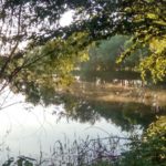 Trzydzieści minut później z zapartym tchem siedziałem w aucie podziwiając mały fragment wody który przebijał się poprzez dziurę w liściach oświetlony wiosennym słońcem  i okraszony malowniczym oparem. Dodatkowo tło muzyczne do tego zjawiskowego obrazu zapewniały żaby i ptaki koncentrując.  Jednym słowem magia, magia wędkarskiego poranka. Nastrojony odpowiednio odetchnąłem pełną piersią zaczerpując wspaniałe wilgotne i rześkie poranne powietrze. W głębi duszy czułem że dzień będzie udany.