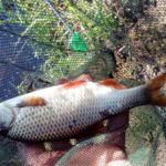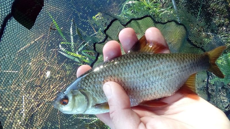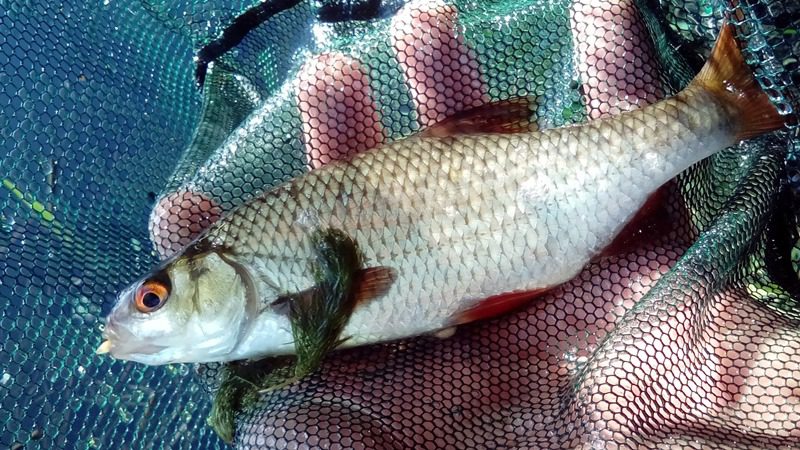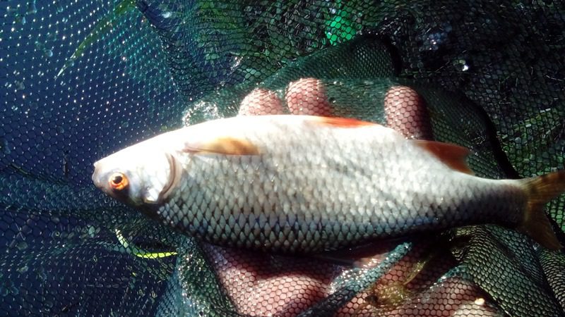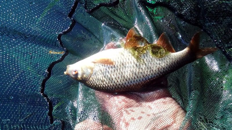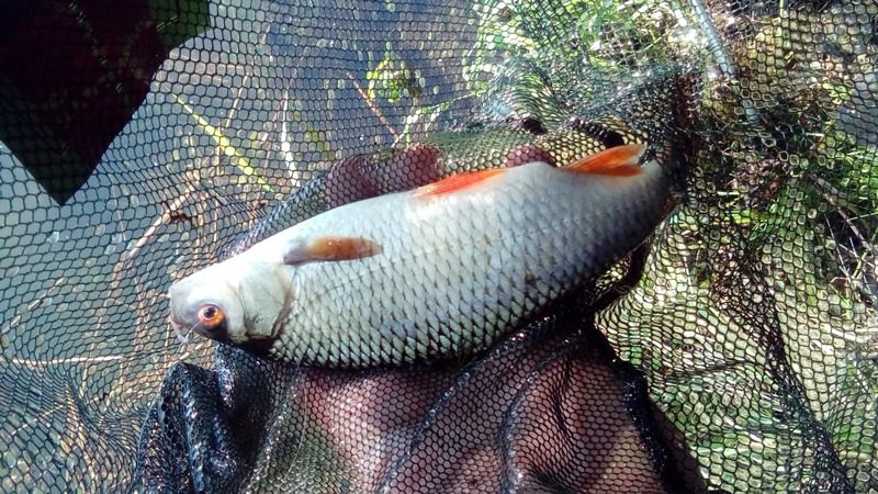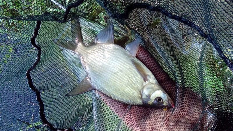Odczekałem chwilę sącząc chłodny napój pod rozważania wziąłem taktykę i grunt ustawiłem na starcie centymetr nad dnem.  W późniejszym czasie okazało się to słuszną taktyką i na pierwszym topie pozostał on bez zmian do końca wędkowania.  Pierwszy wyjazd zestawu i natychmiastowe branie i w podbieraku zameldowała się wspaniała wzdręga ciesząc oczy wspaniałymi barwami i przyjemnie w czasie holu wyciągając amortyzator w tycze.