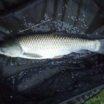 Auto zaparkowałem sposób by móc po otwarciu drzwi od razu podjąć hol ryby. Nie musiałem długo czekać na swojego amura i po jakiś trzydziestu minutkach gdy planowałem już ponowne zmrużenie oka nastąpił odjazd . Doholowałem walecznego Azjatę do brzegu i tu miałem wielki problem z podebraniem ryby. Wysoki brzeg i kontuzja kręgosłupa nie pozwalały na sięgnięcie ryby. Po namyśle uklęknąłem na mokrej trawie i ryba znalazła się w podbieraku. Szczęście ze złowionej ryby przytłumiło nieco ból pleców. Nie mniej po walce z rybą odleżałem swoje grzejąc plecy.