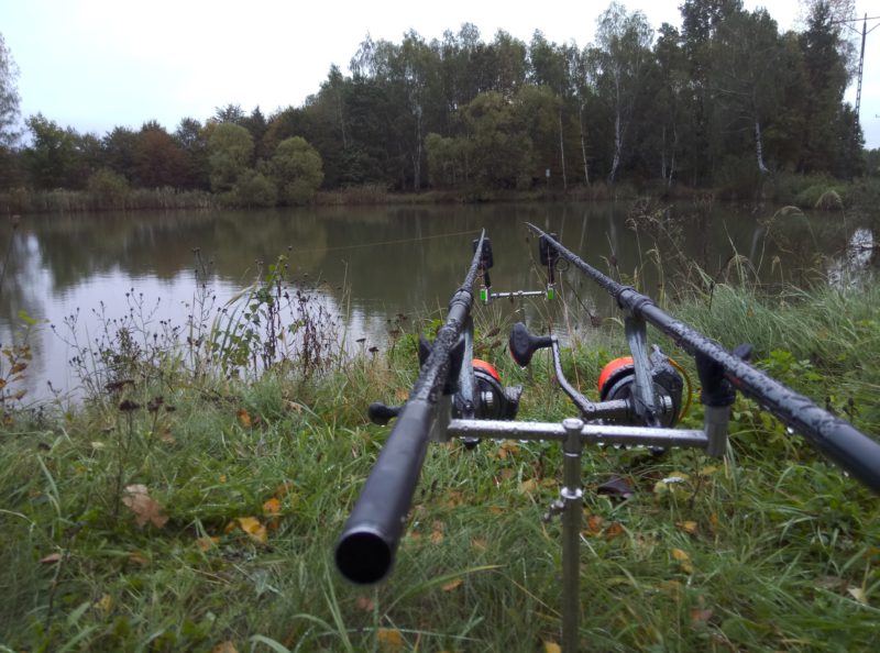 Pracowałem dzielnie przez większość soboty ręcznie w dwudziesto litrowych wiadrach wynosząc gruzy powstałe po wcześniej zwalonym stropie w pomieszczeniu gospodarczym które mam zamiar przekwalifikować na gospodarczą kuchnię gdzie bez przeszkód będę mógł się oddawać winiarstwu, piwowarstwu, wędliniarstwu, przetwórstwu płodów ogrodu i produkcji przynęt i zanęt. Oczami duszy widząc siebie gospodarującego w przyszłym raju przykładałem się srogo do pracy by jak najszybciej zrealizować kolejne z moich marzeń. Niestety jak ktoś z biegiem lat odwykł od ciężkich fizycznych prac to łapie często kontuzję tak i ja na koniec dnia lekko nadwyrężyłem sobie plecy. Mimo poważnego bólu ani myślałem rezygnować z nocki na rybach gdyż cały czas z łowiska docierały do mnie doniesienia że amury wpadły w szał żarcia i biorą na całym stawie jak wściekłe. Po ułożeniu dzieci do snu w okolicy dwudziestej drugiej pojawiłem się na łowisku. Zamieniłem kilka słów z kolegami i wypiwszy małe złociste szczęśliwy z tego że zestawy dzięki pomocy uczynnych kolegów zostały wywiezione. Udałem się na spoczynek do mojej zagrzanej skody by dać wytchnienie bolącym już na poważnie plecom. Do godziny szóstej wygrzewałem obolałe plecy aż ze snu wyrwało mnie kilka pików z mojego sygnalizatora. Na raty wygrzebałem się z samochodu i nim doszedłem do wędzisk branie się skończyło a chwilę po tym na wędce Bogdana pojawiło się branie. Wyholował on więc amura zapiętego na moim zestawie. Śmiejąc się zgodziliśmy się że amur liczy się po połowie. Mimo deszczu i wściekłego już bólu pleców miałem presję na amura więc postanowiłem ponownie wywieźć zestawy. Nie chciałem już kolegów niepokoić więc zmieniłem miejsce łowienia w taki sposób by łódkę RC umieszczać w wodzie na prostych plecach brodząc. Na szczęście dobre buty pozwoliły na taki manewr przy zachowaniu suchych stóp.