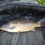 Wywiozłem więc zestawy i schroniłem się we wnętrzu auta. Na pierwsze wyniki nie musiałem długo czekać ryby choć niewielkie ładnie współpracowały i co chwilę moje sygnalizatory dawały znać o sobie. Zmiana taktyki przynosiła dobre efekty jednak dopadły mnie małe wyrzuty sumienia że nie spędziłem czasu z rodzinną więc w okolicy godziny dwunastej powróciłem do domu by pobyć z najmłodszym synem sam na sam.