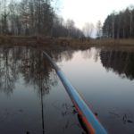 W okolicach godziny czternastej w końcu dotarłem na łowisko przezornie włączyłem tryb samolotowy w telefonie i rozłożyłem tyczkę oraz rozpocząłem gruntowanie łowiska. W trzydzieści minut później po lekkim zanęceniu gliną i pinką z symboliczną ilością zanęty spożywczej pierwszy raz wstawiłem zestaw w łowisko.