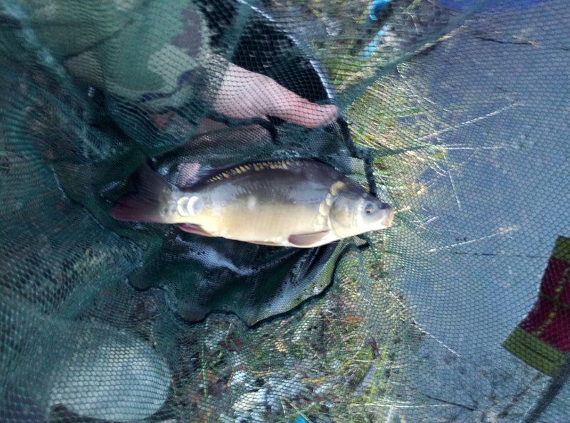 W głębi duszy czekałem na ten moment wiedziałem że w łowisko weszły właśnie większe ryby i nie pomyliłem się. Już w chwilę potem guma z topu pięknie wyjechała i po pięknej walce w podbieraku wylądował piękny karpik z tegorocznych zarybień.