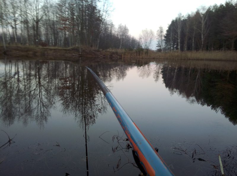 W okolicach godziny czternastej w końcu dotarłem na łowisko przezornie włączyłem tryb samolotowy w telefonie i rozłożyłem tyczkę oraz rozpocząłem gruntowanie łowiska. W trzydzieści minut później po lekkim zanęceniu gliną i pinką z symboliczną ilością zanęty spożywczej pierwszy raz wstawiłem zestaw w łowisko.