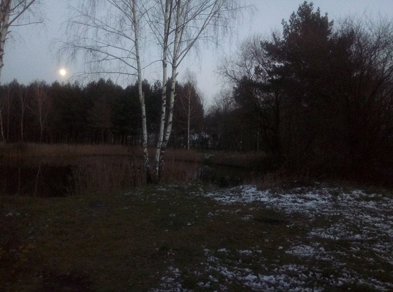 W między czasie zachodzące słońce ustąpiło miejsca wschodzącemu w pełni księżycowi temperatura znacząco spadła. I moje ręce mokre ze śluzu ryb gdyż oczywiście zapomniałem ręcznika szybko zmarzły do tego stopnia że operowanie tyczką stało się nie możliwe .