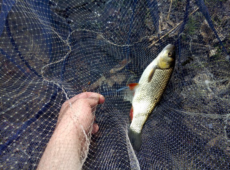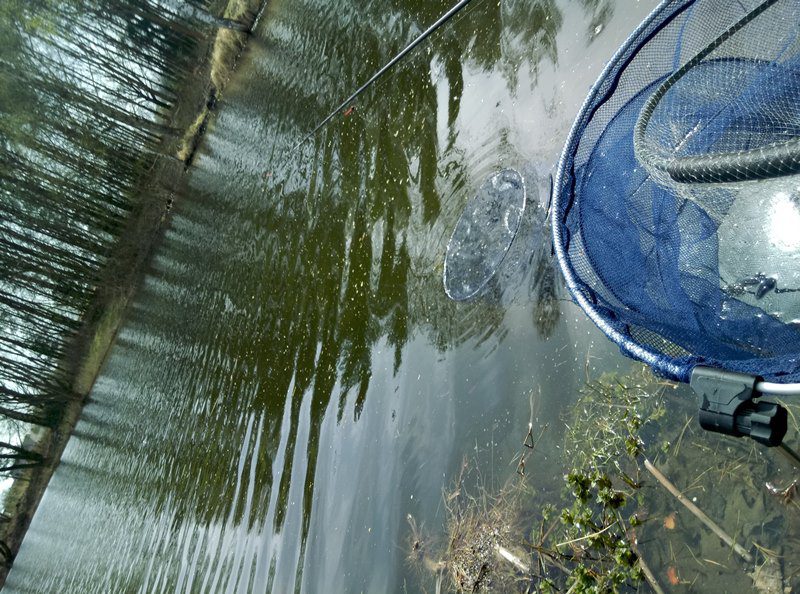 Po około godzinie z lekką nutą niepewności wstawiłem zestaw w łowisko i mogłem z zadowoleniem obserwować spławik błyskawicznie znikający pod wodą. Po przyjemnej walce w podbieraku wylądował kleń następnie kilka bolonków i w końcu regularnie zacząłem poławiać dorodne płocie. W bardzo zadowalającym tempie miałem świetne brania świetnych ryb. Po jakiejś godzinie brania nieco osłabły a ja zadałem sobie trud donęcenia z kubka i wykonując kilkanaście wyjazdów w łowisko przywróciłem tempo brań.