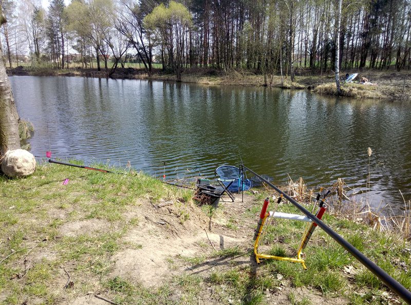 Na świecie od kilku tygodni zagościła wiosna, wspaniałe słoneczko swymi ciepłymi promieniami wybudziło z zimowej hibernacji przyrodę. Szaro bure drzewa okryły się bogactwem pąków i młodych listków a kwitnące gatunki przybrały kwiecistą już szatę. Świat nabierał soczystości młodej pełnej soków wiosennej trawy i eksplodował na nowo życiem. Wszędzie zagościła wiosna tylko nie w mojej duszy tam jeszcze trwała zimowa stagnacja. O dziwo nie spowodowana obowiązkami czy też brakiem czasu a pracami społecznymi na rzecz łowiska na które poświęcałem wszystkie wolne chwile. Nie zaprzeczę że w czasie nich miałem zawsze symbolicznie wędki w wodzie ale ten kto chce pracować a nie skupia się na łowieniu odnosi w tej materii raczej nikłe sukcesy. W sobotę siódmego kwietnia czara goryczy przelała się u mnie i wykonując szesnaście wykopów pod planowane nasadzenia lip stwierdziłem że na jakiś czas należy odłożyć prace społeczne i wreszcie oddać się pasji z całym zaangażowaniem jakiego od wędkarza skuteczne łowienie wymaga.