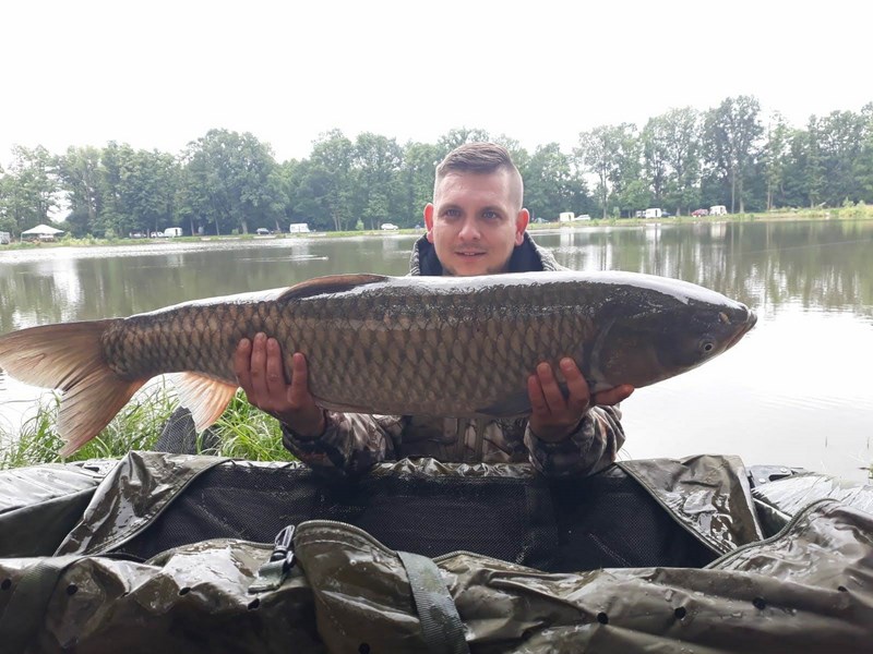 Łowisko Ademac w swojej łaskawości i mi przyniosło zacną rybę w postaci amura który zdecydował się na branie w po południu w drugim dniu zawodów. Stwierdziwszy optycznie że jego masa nie przebije złowionych wcześniej okazów w trosce o jego stan odbyłem z nim szybką sesję fotograficzna i czym prędzej zwróciłem go jego naturalnemu środowisku. Generalnie tylko nieliczni pechowcy wrócili o przysłowiowym kiju większość z kolegów złowiła ryby w ostatnich chwilach zawodów.