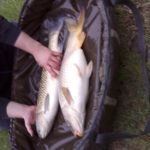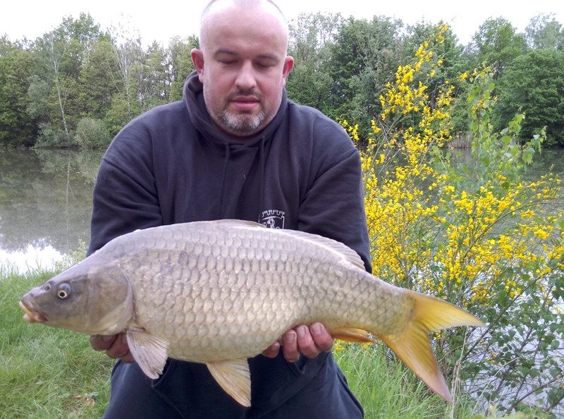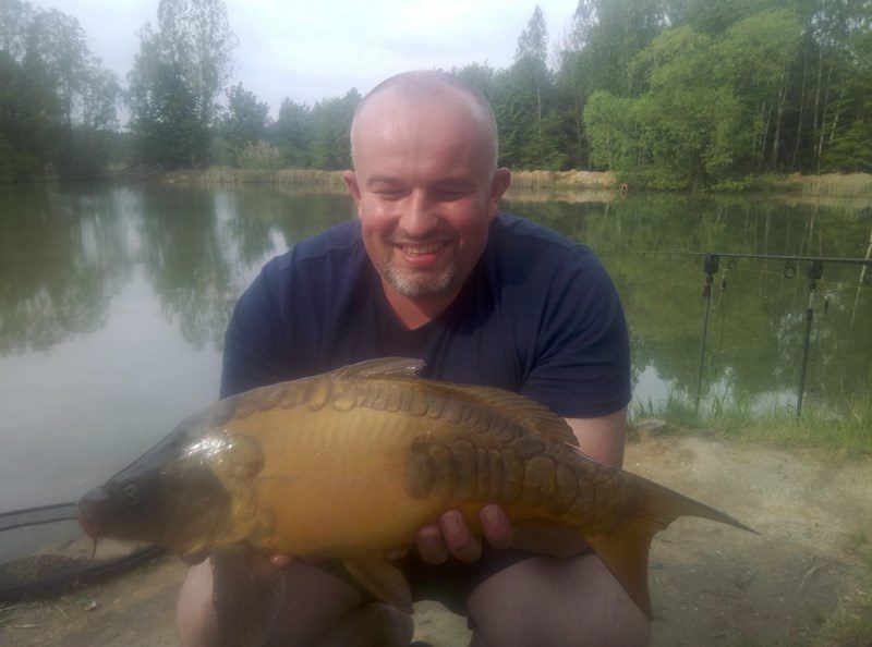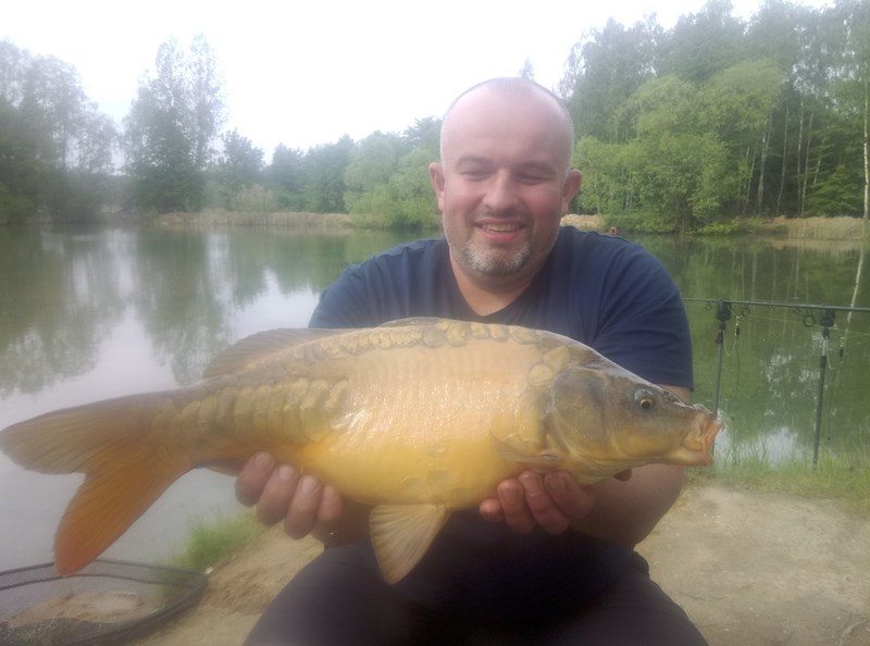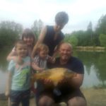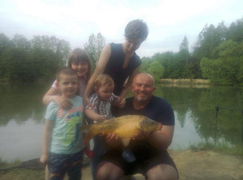 Niewielkie dawki snu które sobie aplikowałem przerywane braniami ryb i jak że słodkimi obowiązkami w domu spowodowały konieczność przespania kilu chociaż by godzin zrobiłem więc sobie przerwę od łowienia i blisko dwadzieścia cztery godziny zapadłem w sen niedźwiedzi nie czułem nawet skaczących po mnie dzieci. Takim snem potwornie wystraszyłem małżonkę i mogłem zapomnieć o kolejnej nocy na rybach stwierdziła, że nie będę się nudził a odpoczynek mi się należy gdyż boi się o moje zdrowie a rano pojedziemy całą familią na ryby gdyż ma ochotę posiedzieć nad wodą. I stało się tak jak powiedziała moja małżonka mogłem spędzić kilka rodzinnych i radosnych godzin z całą wędkującą familią. Glinianki postanowiły okrasić ta zacną atmosferę i w porze popołudniowej obdarowały nas braniem cudownie ubarwionego karpia.   Karp spodobał się zwłaszcza moim pociechą i wycałowany i wygłaskany wrócił do wody. Dzień zakończyliśmy zacną kolacją z grilla. Odwiozłem familię do domu położyłem dzieci spać i ponownie zawitałem nad wodą by samemu w końcu co nieco odetchnąć i z przyjaciółmi co nieco spożyć.
