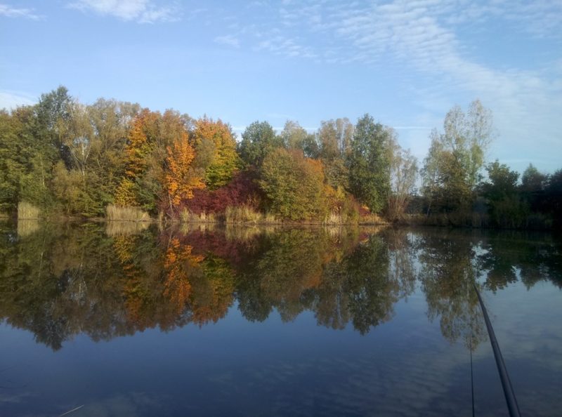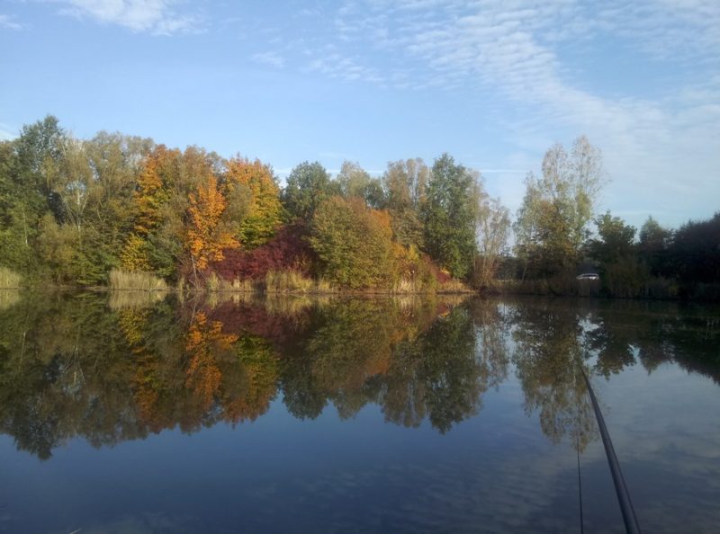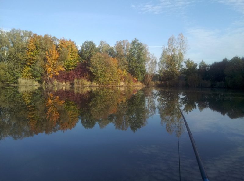 Czy wędkarz potrzebuje więcej impulsów by stawiać się nad wodą? Ja nie potrzebowałem pojawiłem się tam w niedziele siódmego października. Gdy pojawiłem się nad wodą niezmąconą najmniejszą nawet falką mogłem swoje oczy nacieszyć jednym ze wspanialszych widoków jakie zafundowała mi przyroda. Gra kolorów światła, cudowne połączenie błękitu nieba z bogactwem kolorów obumierających liści. Moja dusza już chłonęła klimat jesiennego łowienia. Nie zdawałem sobie jeszcze sprawy z tego że wyprawa ta przyniesie mi zerową ilość ryb a chęć ich złowienia zmusi mnie do czterokrotnej zmiany miejsca połowu. Mimo wysiłków i zastosowania wszystkich sztuczek nie nawiązałem kontaktu z najmniejszą nawet rybą. W końcu poddawszy się spakowałem cały majdan do auta i zająłem się tym co wydawało mi się najlepszym wyjściem z tej sytuacji. Przysiadłem na brzozowej ławce wystawiłem ciało na działanie wspaniale ciepłych promienie słonecznych. Chłonąłem każdy aspekt jesiennych wspaniałości. Posiedziałem tak dobre dwie godziny wysączywszy termos kawy. Cudownie odprężony i wygrzany promieniami słońca wracałem do domu o kiju ale z jak lekką duszą.