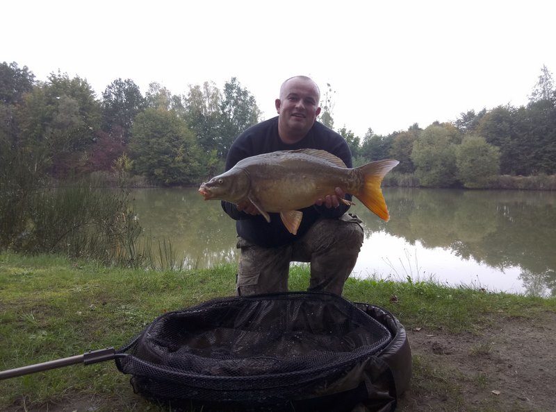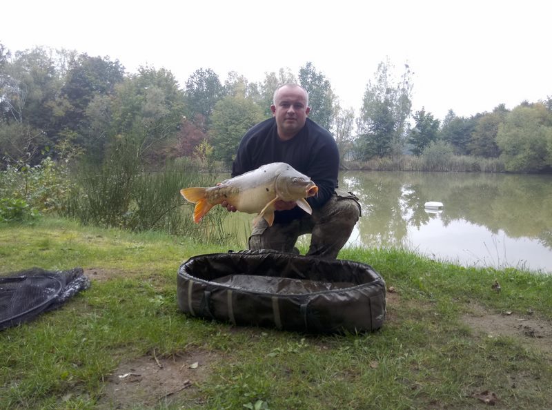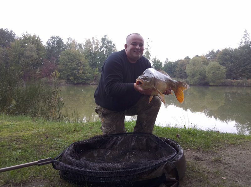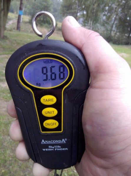 W końcu pojawiło się światełko w tunelu i dnia dwudziestego piątego września nadarzyła się okazja by spędzić kilka chwil nad wodą. Skwapliwie z niej skorzystałem i nieco po godzinie trzynastej rozkładałem rozstrzępionymi rękoma wędziska oczywiście klasycznie wybór musiał paść na najbliżej leżące gliniaki. Postanowiłem aktywnie poszukać ryb które z racji spadku wody zmieniły swoje klasyczne miejscówki i tak dziwnie się złożyło że ryby w ciągu dnia spławiały się w miejscach gdzie było nie całe 80 cm wody. Niby spławy wydawały się obiecujące jednak nie wiadomo czy karpiowi towarzysze przedkładali pożywianie się czy też wolały wygrzewać swoje grzbiety w promieniach wszak jesiennego już słoneczka. Zaryzykowałem i postawiłem dwa zestawy na płytkiej wodzie. Dwa nie zapięte brania skłoniły mnie do zmiany przynęt na mniejsze i założenia z tej racji Świerzych przyponów. Zmiana wielkości przynęty okazałą się strzałem w dziesiątkę i w kilka chwil później miałem atomowy odjazd. Ryba parła prosto w zaczepy a ja miałem ogromne problemy by ją zatrzymać i odwieść z obranej drogi prosto w gałęzie powalonego drzewa. Udało się w końcu zmienić zamiary karpia i mogłem przejść do właściwej fazy holu który z racji korzystania z plecionek przeprowadzałem nieśpiesznie delektując się majestatycznymi odjazdami karpia. W końcu moim oczom ukazał się bardzo ładny karp oscylujący w okolicy bliskiej dziesięciu kilogramów mogący pochwalić się przeogromną płetwą i niespożytymi siłami. Co skutecznie pokazał gdyż w momencie wprowadzenia do podbieraka dosłownie przebił go na wylot powodując rozerwanie siatki na kilkadziesiąt centymetrów i ponownie przystąpił do walki tyle ze porodziłem ją z linką przewleczoną poprzez podbierak. Po chwili jednak udało się podjąć rybę z wody zaopatrzyć i zważyć. Pełen pozytywnych emocji wypuściłem karpia który na do widzenia ochlapał mnie wodą. Rozłożyłem zapasowy podbierak i wywiozłem ponownie zestawy po czym przystąpiłem do łatania dziury w podbieraku zszywając uszkodzenie czarną żyłką. Gdy tylko zakończyłem operację która zabrała blisko czterdzieści minut ponownie odezwał się sygnalizator. A ja na kiju poczułem kolejną szaloną rybę która szła po tafli wody na przysłowiowym ogonie zachowując się jak jesiotr. Mimo że masa ryby oscylowała nieco poniżej ośmiu kilogramów to jej aparat napędowy w postaci przeogromnej płetwy ogonowej w połączeniu z niesamowitym temperamentem zapewniły mi jeden z bardziej szalonych holi tego sezonu. Z wielkim uśmiechem powitałem tą rybę na macie. Emocje tak buzowały we krwi że postanowiłem nie wywozić jeszcze zestawu ponownie i w sumie dobrze się stało bo kilka sekund później odezwał się telefon i małżonka poprosiła o wcześniejsze zakończenie wyprawy. Niechętnie wracałem do domu we krwi buzowała adrenalina i endorfiny wprowadzały mnie w znakomity nastrój. Gdy moje kochanie ujrzało moją uśmiechnięta twarz od razu poprosiło o pokazanie zdjęć i wraz ze mną cieszyła się z małego wędkarskiego sukcesu.
