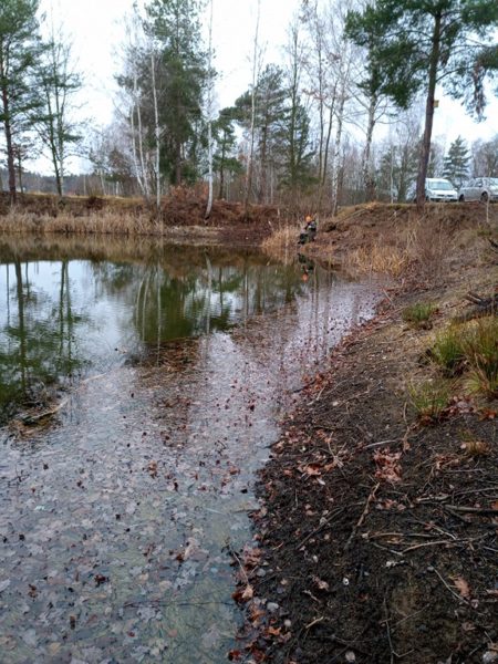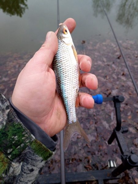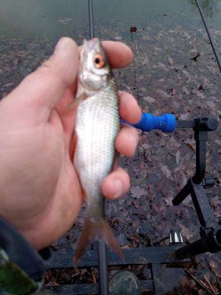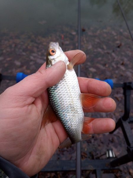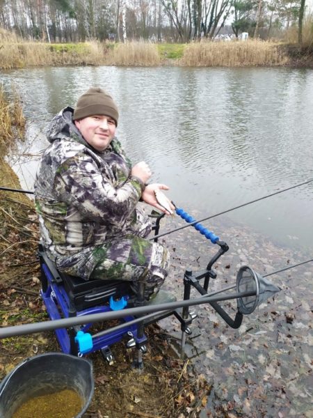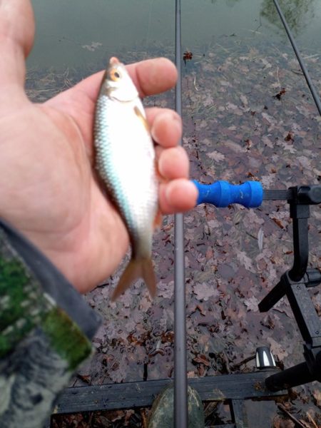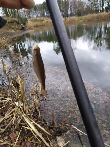 Pokrzyżowałem co nieco ta decyzją plany mojej małżonki, ale chęć łowienia przysłoniła małżeński rozsądek. W godzinach około południowych wjechałem na łowisko jednak prace porządkowe na łowisku nie pozwoliły mi zająć planowanej miejscówki. Wzrok mój padł na niedawno modernizowany staw osuszony co nieco z wody dzięki dużej akcji gaśniczej. Dlaczego nie pomyślałem. I nieco nierozważnie wybrałem miejsce bez uprzedniego gruntowania. Wody około metra dziesięciu nie wróżyło dobrze jednak, postanowiłem zaryzykować ponownie na płytkiej wodzie łowienie. Zanętę podałem symbolicznie z kubka i na branie czkałem jakieś dziesięć sekund.  Na haku zagościła całkiem akceptowalna płoć więc ze względu na sprzęt postanowiłem zaryzykować i obławiać dalej miejscówkę. W minutę po pierwszej rybie usłyszałem wysokie obroty silnika i wkrótce wyłonił się wóz prezesa pędząc na miejscówkę. Wyskoczył przywitał się i powiedział że myślał iż zająłem jego stałe tyczkowe miejsce w tym roku jednak o jakiś metr płytsze. Gdy prezes przygotowywał swoje stanowisko ja co kilka minut odławiałem kolejną akceptowalna płotkę. Zabawa trwała w najlepsze a i prezesowi ryba na wodzie dwukrotnie głębszej dopisywała. Odłowiłem około 50 płotek i ponaglany telefonami musiałem wracać do domu. W domu czekały na mnie już moje szkraby wszak tato obiecał spacer i spacer miał być. Szczęśliwy i co nieco wyłowiony spacerowałem całą familią szukając oznak zimy. Była to przed ostatnia wyprawa w roku 2019 bo w niedzielę 30 również udało mi się być na rybach jednak pojechawszy tam nieco zwaśniony z małżonką nie połowiłem i nie miałem serca do dokumentowania swoich wyczynów.