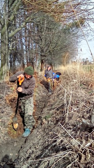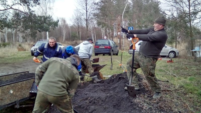 Błyskawicznie swoim zwyczajem nadszedł weekend. W głowie od razu zaczęły kiełkować wędkarskie plany na jakiś mały wypadzik. Tradycyjnie w chłodnej porze przeżywałem wewnętrzną rozterkę. Którą metodę wędkowania wybrać. Siedziałem rozmyślałem aż zdałem sobie sprawę z tego że przecież moje koło działa na czynie społecznym w sobotę 22.02.2020. Nie wypadało za bardzo chłopaków zostawiać samych sobie. Więc w sobotę punkt ósma ze spiningiem macałem wodę w poszukiwaniu okoni. Niedługo pocieszyłem się wędkowaniem gdyż usłyszałem nadjeżdżające pojazdy kolegów zmierzających na czyn. Szybko więc złożyłem wędki przebrałem się w bardziej zdatne do brudnej pracy ubrania i złapawszy za szpadel pobiegłem na miejsce zbiórki. Gdzie wśród ciętego męskiego żartu wzrastało morale do pracy. Frekwencja dopisała więc gospodarz łowiska mógł podzielić ludzi na zespoły i zrealizować sporo zaległych prac. Więc sobota upłynęła pracowicie. Za to na świeżym powietrzu i w znakomitym towarzystwie. Przesunąłem więc wędkarskie plany na niedzielę 23.02.2020 i z tą myślą czekałem niecierpliwie niedzieli.