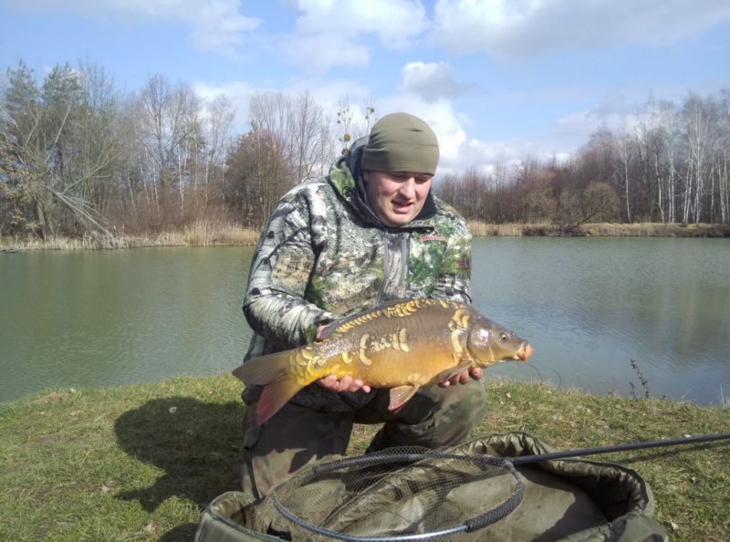 Nadszedł dynamicznie następny tydzień i sobotę spędziłem wraz z córką i małżonką na targach wędkarskich w Poznaniu. Miałem szansę w spokoju pooglądać sprzęt wędkarski i ofertę przynęt na 2020 rok. Po udanej wycieczce nadszedł ósmy marca dzień kobiet, ale też okazja by wymknąć się na chwilkę z domu i połowić co nieco. Skwapliwie z niej skorzystałem i w godzinach około południowych przybyłem na lokalne łowisko. Spotkałem na nim kilku karpiowych zapaleńców którzy próbowali już swoich sił w ciężkich karpiowych gruntach. Ja postawiłem jednak na metodę bo przez trzy godziny którymi dysponowałem, karpiowe przynęty nie zaczęły by nawet pracować. W moim mniemaniu łatwiejsza część zbiornika była zajęta skupiłem się więc na części nieco trudniejszej. Gdzie precyzja jest jedynym kluczem do sukcesu. Karpiowi koledzy byli szalenie zaskoczeni tym że z pokrowca zamiast moich nieśmiertelnych kijków karpiowych wyjechały feedery. I w pojemnikach zamiast kukurydzy i kulek pojawiły się pellety i drobna szybko pracująca zanęta. Uspokoili się co nieco gdy w ślad za wędkami i pudełkami z zanęta wyjechała mata i większy podbierak karpiowy. Jeden ze znajomych oddał się konwersacji i nie omieszkał przyznać że już się zaczął obawiać o moje wędkarskie preferencje. Uspokoiwszy kolegę że niewiele w tej materii się u mnie zmieniło. Posłałem w upatrzone miejsce zestawy do wody i oddałem się zdawaniu relacji z targów. W między czasie na łowisku pojawił się kolega prezes by pochwalić się nowo zakupionym zestawem spinningowym ultra light. Wysłuchawszy mojej relacji z targów łaskawie dał poczuć niezwykle aksamitną pracę markowego kołowrotka i pracę blanku spinningu z najwyższej półki. Jednak moje myśli krążyły w około karpiowego sprzętu i musiałem podjąć decyzję czy przełowić kolejny sezon na starym sprzęcie, czy też go co nieco zmodernizować. Moje rozmyślania przerwało miłe każdemu wędkarzowi głębokie ugięcie szczytówki. Wkrótce po miłej walce na macie leżał sobie wspaniale ułuszczony karpik. Dzięki uprzejmości kolegi Jarosława możecie podziwiać go ładnie zaprezentowanego na zdjęciu. Szybkie przerzucenie zestawów i powrót do rozmyślań nie pozwolił w pełni docenić piękna walki z pierwszą rybką. Więc woda w kilka minut po pierwszym braniu obdarzyła mnie kolejną szaloną rybą. Może chodzącą w nieco niższej wadze jednak o wysokiej waleczności. Więc użycie delikatnego sprzętu wymusiło na mojej osobie poproszenie wespół wędkujący o zwinięcie zestawów. Kolejny raz fotograficzne umiejętności Jarosława pozwoliły ładnie zaprezentować wam małego szaleńca. W między czasie na łowisku pojawili się wędkarze ornitolodzy w celu sprawdzenia budek i wszamania kiełbaski z ogniska. Pogrążony w dysputach z za ciekawieniem słuchając ornitologicznych niuansów, zmarnowałem dwa ładne brania. Zegar wybił godzinę czternastą więc na tępa musiałem się zwijać do domu. Gdzie ze zniecierpliwieniem oczekiwała mnie familia rządna tradycyjnego niedzielnego spaceru w oczekiwaniu wiosny. Przed spacerem jednak męska część domowników musiała godnie uczcić Dzień Kobiet. Obdarowała więc mieszkanki domostwa słodkościami. Niedzielę zakończyliśmy spacerem blisko dwugodzinnym i wspaniałym rodzinnym czasem.