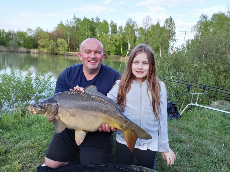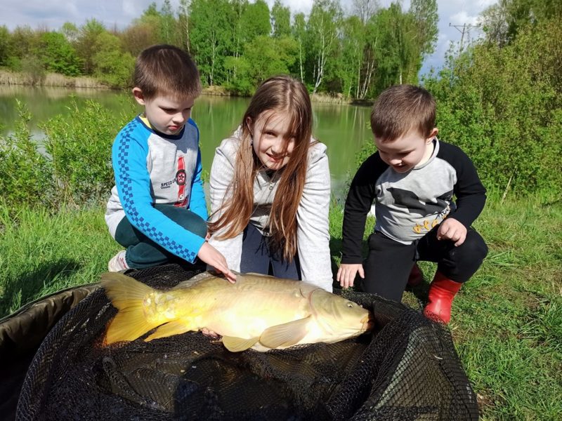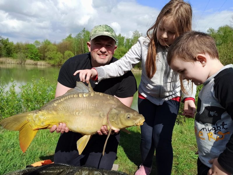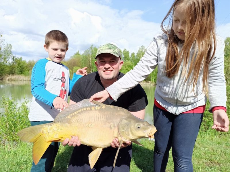 W trzydzieści minut później ciszę na łowisku przerwały głosy mojej rozentuzjazmowanej familii. Która dała mi popalić do tego stopnia że już pierwszej nocy miałem co nieco dość majówki w formie rodzinnej i obawiałem się że reszta będzie próbą przetrwania a nie relaksu i wypoczynku. Rano jednak po odespaniu i pysznym śniadaniu zmieniłem zdanie bo noc w kempingu pozytywnie wpłynęła na dzieci. Ich zachowanie nie odbiegało od tego w domu i mogliśmy się zająć łowieniem ryb już od samego rana. Wędki oczywiście na noc zwinąłem bo wstawać w nocy z racji zmęczenia nie byłbym wstanie. Jednak radosny dzień przyniósł wiele pięknych ryb. Niestety nie mi było dane podejmować hole i epickie walki z nimi. Rolę łowczyń przejęła żeńska część mojej rodziny. Feederami zajęła się magdalena łowiąc raz za razem piękne ryby a ciężkie karpiówki przypadły w udziale małżonce która dzielnie już sobie z nimi poczynała.