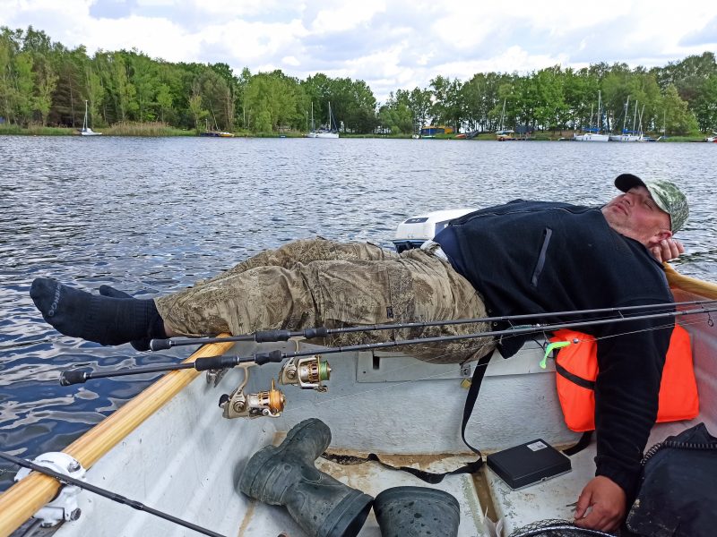 Znużeni udaliśmy się do przystani by skonsumować oczywiście w smażalni ryb sandacza z frytkami i złapać chociaż kilka godzin snu przed wieczorną porą żerowania sandaczy.   Pierwszy dzień sandaczowego eldorado mielimy za sobą ręce przyjemnie bolały od operowania wędziskami i całodniowego spinningu a pora bliska godzinny 23 nie zapowiadała długiego odpoczynku. Ledwie człowiek przyłożył głowę do poduszki już musiał otworzyć oczy i wyruszać na łowiska tym razem nauczeni doświadczeniem nie spieszyliśmy się tak bardzo i na wodzie byliśmy o godzinie 5:30 gdy wyruszyła już główna fala spinningowców. Ponownie udało się nam połowić i nasycić ze spotkaniami z zacną ryba jaką jest sandacz.