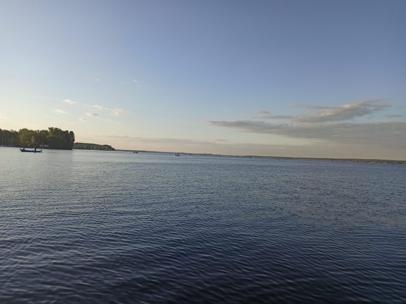 Udało się zająć całkiem przyjemne miejsca postojowe dla małej floty łódek a ja odbyłem kilka próbnych rejsów by sprawdzić obiecujące miejsca i przyzwyczaić się do fali oraz obadać jak na niej zachowuje się moja łódka. Testy wypadły całkiem pomyślnie więc po powrocie i małej kłótni o palik do cumowania łódki, który sam sobie musiałem wytworzyć i wbić w podłoże a ktoś mimo wyraźnych znaków w postaci świeżej linki i kłódki na nim, przycumował swoje łódki. Po dowiedzeniu swoich praw do palika, mogłem zasiąść w śród rozlokowanych w ośrodku Rybaczówka znajomych i przy ognisku posłuchać wędkarskich opowieści, skrzętnie notując w pamięci miejscówki wymieniane w opowieściach w śród „swoich”, które sezon wcześniej dawały ryby.