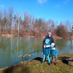 Jak mogłem odmówić mojej pani żonie wspólnych ryb tym bardziej że zaraziła się tym hobby nie na żarty. Oczywiście w pakiecie pojechali z nami moi synowie gdyż córcia wizytowała dziadków w tym czasie. Aura dość dopisywała część zbiornika pokryta była lodem ale nie miało to dla mnie znaczenia żadnego. Znaczenie miało za to to że pierwsze ryby startowałem z żoną i synami. Po cichu liczyłem na to że coś tam uda się złowić, synowie zajęli się eksploracją terenu przyległego do łowiska a ja z małżonką mieliśmy czas na rozmowę i pobycie razem nad wodą. Popijając fenomenalną herbatę z przyprawami i miodem cieszyliśmy się wspólnie spędzanym czasem. Małżonka jednak moszcząc się na moich kolanach bacznie obserwowała końcówki moich feederów. Dzięki jej czujności udało się złowić kilka podleszczyków. Podleszczyki uatrakcyjniły co nieco wyjazd i dały nieco radości małżonce. Po trzech godzinach zwinęliśmy się do domu gdzie wróciła z wizyty u dziadków Magdalena i urządziliśmy sobie rodzinny seans filmowy…