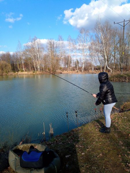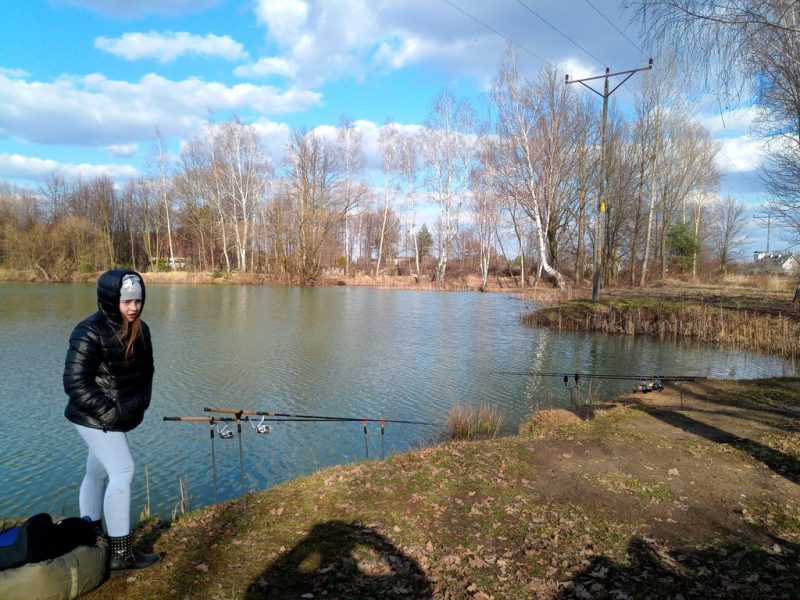 Niespełna tydzień minął od pierwszej wyprawy na ryby w roku 2021 a ja już w piątek słyszałem pytania z ust rodziny, „Kiedy pojedziemy na ryby?”. Pogoda dnia 6 marca nie była najgorsza więc wraz z całą ferajną udaliśmy się na „nasze” glinianki w celu spędzenia kilku godzin nad wodą. Zabrałem ciężki sprzęt karpiowy, feedery dla Magdalenki  termos z herbatą, przekąski, zapakowałem rodzinę do mojej dzielnej wysłużonej już co nieco skody. Po kilku  minutkach byliśmy na miejscu, chłopacy srogo dokazywali więc nie było mi  łatwo znaleźć chwilę by rozłożyć wędziska karpiowe. więc uwaga skupiła się jedynie na feederach, które nadzorowała Magdalena.