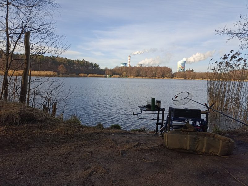 Małżonka przekupiona śniadaniem i rozbawiona, stwierdziła że się wściekłem bo na zawodach nic nie złowiłem i teraz zapewne jadę  na Śródlesie by się odkuć. Skąd ona się domyśliła nie wiem, nie miej taki właśnie miałem plan i rozpocząłem jego realizację. Pojawiłem się nad śródlesiem z twardym postanowieniem złowienia leszcza. Zabrałem termos z kawą i drugi z herbatą, przynęty i przekrój wędzisk folderowych. Wspaniała pogoda, bezchmurne niebo i lekutki wiaterek niósł nadzieję że ryby się ruszą. Zauważyłem że całkiem spora grupa wędkarzy miała podobny plan na niedziele i zajęła sporą część łowiska. Cienka tafla lodu w miejscu gdzie zamierzałem szukać leszczy zmusiła mnie do zmiany planów zająłem więc cypel. Rozłożyłem się ze sprzętem i zanęciłem dwie linie łowienia. Po posłaniu wędzisk w łowisko napawałem się widokami które śródlesie mi oferowało. Pooglądałem sobie widoczki osuszyłem dwa termosy gorących napojów i w okolicach popołudniowych wróciłem do domu o kiju. Śródlesie postanowiło po raz kolejny nie dzielić się rybami ze mną. Moją minę po powrocie do domu małżonka rozszyfrowała od razu. Nie komentowała wyników wyprawy, tylko podała obiadek i gładko skierowała mój tor myślowy w inną stronę szczebiocząc radośnie przy obiedzie.