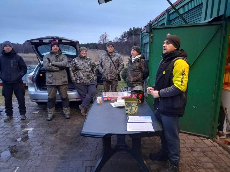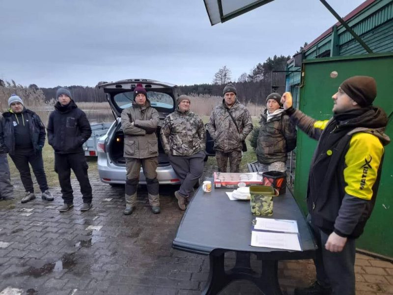 Muszę się wam przyznać że z tej okazji nabyłem kolejne wędzisko typu picker do 30 g gdyż awaryjnie w mojej głowie rodził się plan punktowania zimnymi płociami. Zanęty przygotowałem w domu i bacznie śledziłem pogodę czy aby mróz nie pokrzyżuje planów. Stawiłem się na miejscu grubo przed zawodami, głównie z powodów towarzyskich, dobrze jest się spotkać ze znajomymi i porozmawiać po długich miesiącach posuchy. Rozmowy odbywały się oczywiście przy kawie i czymś słodkim zapewnionych przez organizatorów. Pozytywnym plusem pojawienia się wcześniej był fakt bycia obdarowanym ochotką przez właściciela Centrum Wędkarskiego U Jarka kolegę Jarka. Losowanie było dość łaskawe dla mnie i teoretycznie miałem bardzo dobre miejsce. Niestety ryby chyba nie znały tej teorii. Niezrażony jednak cały okres zawodów po mimo mocno zmiennej pogody kombinowałem by nie skończyć ich o kiju. Niestety śródlesie było dla mnie mało łaskawe z resztą jak dla większości zawodników. Zima to dość kapryśny okres jeżeli chodzi o ryby więc takie wyniki na tak zacnej wodzie w ogóle mnie nie zdziwiły. Zawody zakończyły się poczęstunkiem i rozdaniem pucharów i nagród. Miło było brać udział w tak ciekawiej imprezie wędkarskiej, miło było spotkać się ze znajomymi i miło było w napięciu posiedzieć nad wędkami. Nieco zmarznięty i szczęśliwy wracałem do domu.