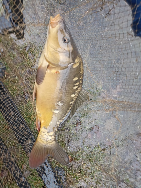 Przyznam się wam że miałem nadzieję że spotkam się z zarybieniowym karpiem a niedawne zarybienie sprzyjało takiej możliwości. Mimo wszystko przygotowałem zanętę typowo na płocie ale też zabrałem drobny pellet by wsypać go w okolicy miejsca głównego nęcenia. Moja taktyka mnie nie zawiodła i po odłowieniu kilkunastu płoci zanotowałem typowo karpiowe drgniecie spławika. Tym co nie mieli okazji doświadczyć brania karpia w zimnej wodzie na spławik powiem ze jest to dwu milimetrowe przytopienie spławika w gramaturze 0,06g. Sam jestem do tej pory zdziwiony że ryba znana z gwałtownych brań i odjazdów przy niskiej temperaturze wody bierze tak delikatnie.