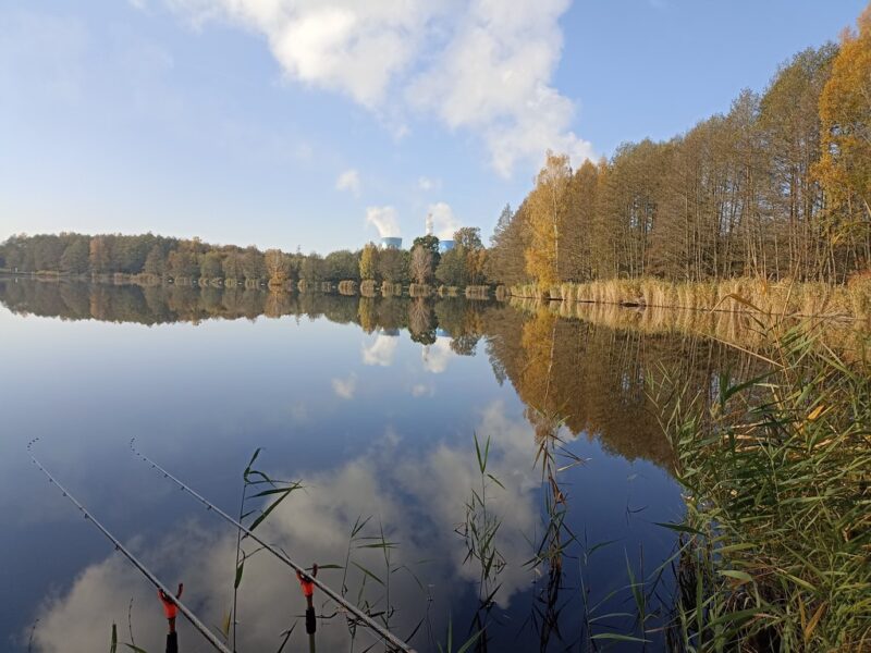26 października i minął kolejny miesiąc zanim miałem szansę pojawienia się nad wodą, skrzętnie ją wykorzystałem tym bardziej że przyroda wchodziła w stadium jesieni. Pierwsze liście zmieniały już barwy spadały i zaczęły pływać po łowisku, tańcząc swój balet  po powierzchni wody porywane podmuchami wiatru. Przebłyski słońca jednak umilały całą aurę i czyniły temperaturę całkiem znośną. Świat był wspaniały skłaniał do refleksji nad przemijającym czasem a okres wzmożonego przed zimowego żerowania dawał spore szanse na spotkanie z rybą,. Nie dałem się zapędzić na ścieżki umysłowych rozważań, maiłem jasno określone cele, spotkanie z rybą, poczucie klimatu jesiennego łowienia i naładowanie baterii.